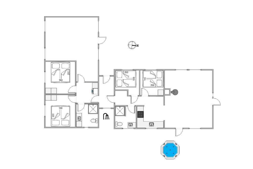 So richtig ausschlafen könnt Ihr Euch in den 4 Schlafzimmern, die alle mit Doppelbetten ausgestattet sind. Umgeben von der Ruhe der Natur, und der gesunden Luft wird Euch hier sicher nichts euren kostbaren Schlaf stören. Das Haus hat außerdem zwei Badezimmer, die eine mit Fußbodenheizung haben. So kann sich jeder in seinem eigenen Bad einrichten, und kann ein wenig Privatsphäre genießen.