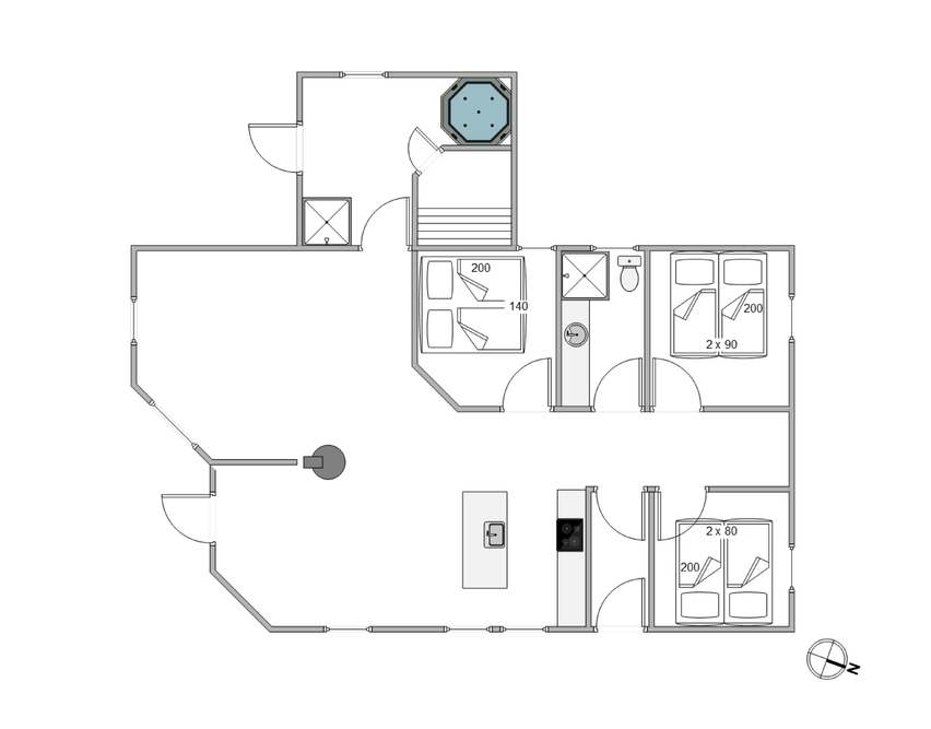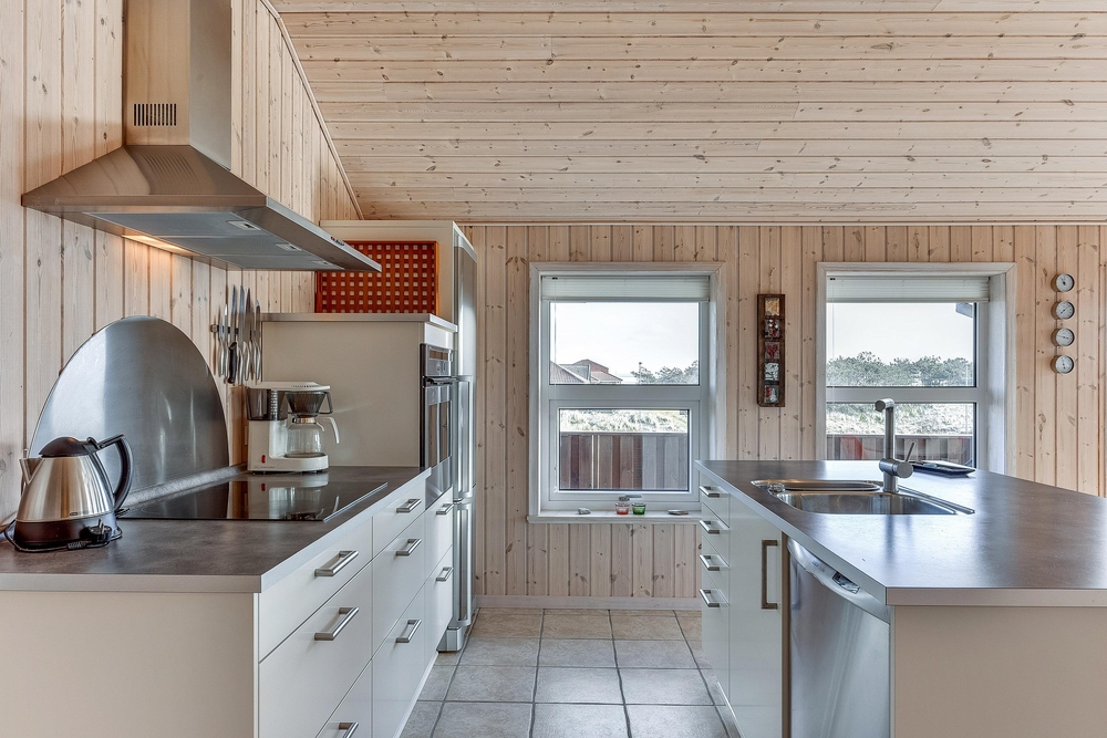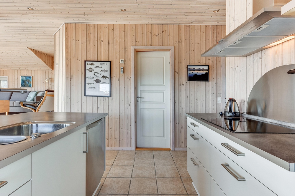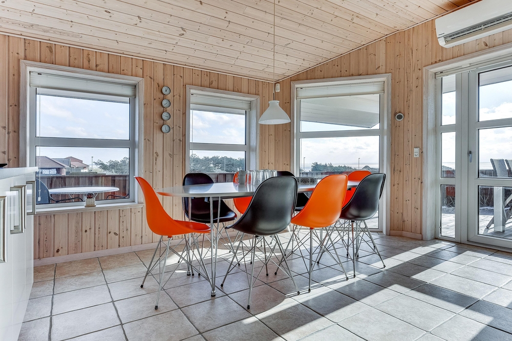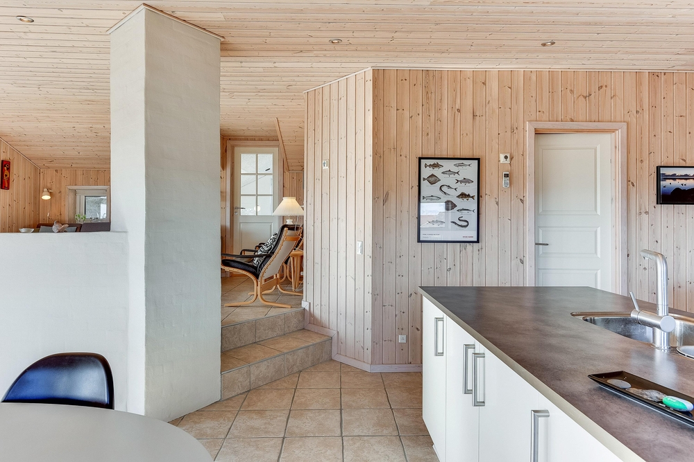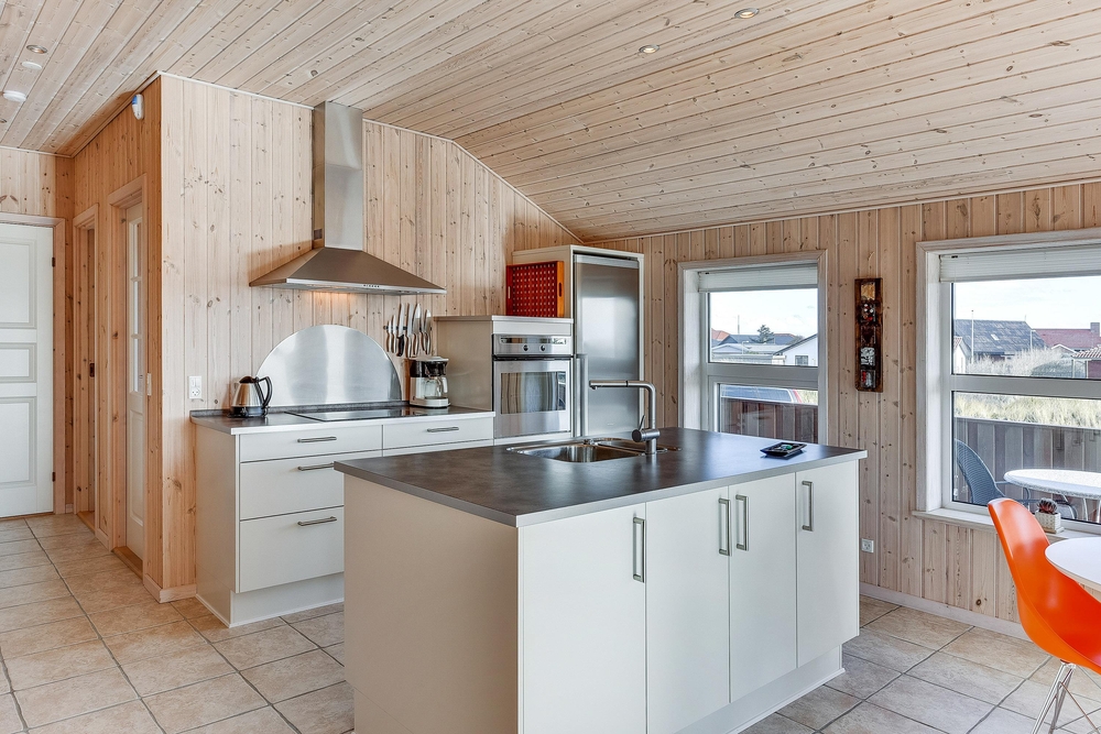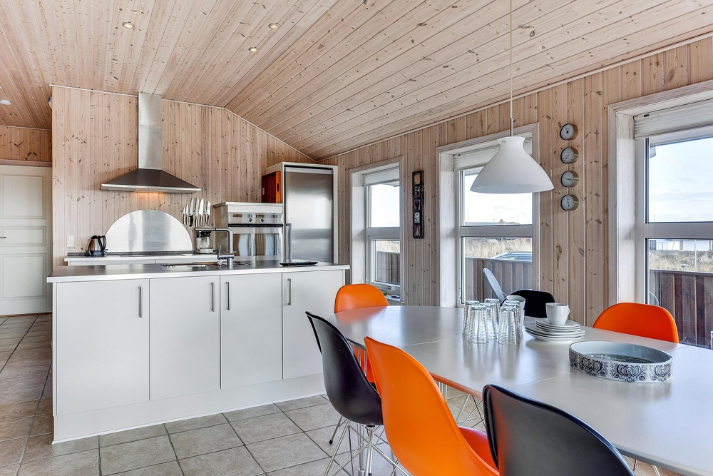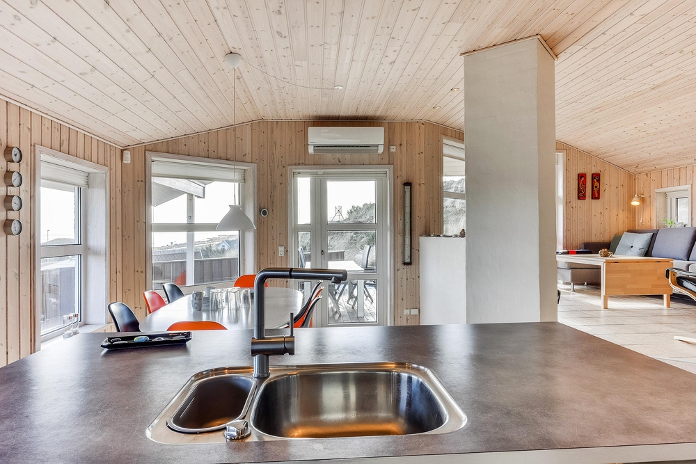 Das helle freundliche Haus ist mit modernen geschmackvollen Möbeln eingerichtet. Der grosse Wohnraum ist mit der modernen Küche kombiniert, die mit allem ausgestattet ist, was Ihr zum Zubereiten leckerer Ferienmahlzeiten benötigt. Die grossen Panoramafenster des Wohnraums sorgen dafür, dass der ganze Raum wunderschön lichtdurchflutet ist. Von hier aus habt Ihr eine herrliche Aussicht über den Ringkøbing Fjord.