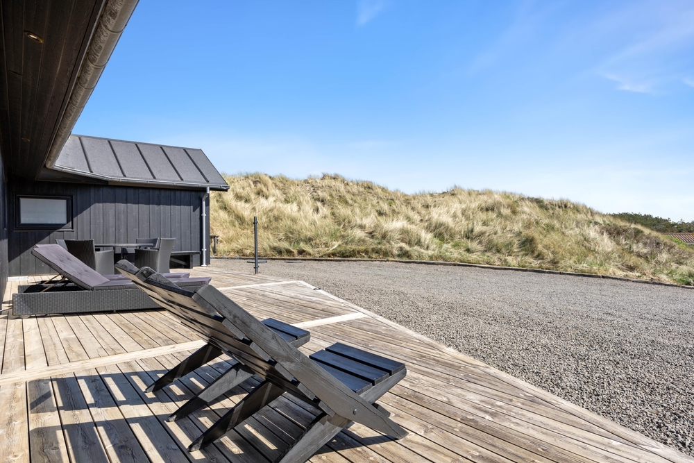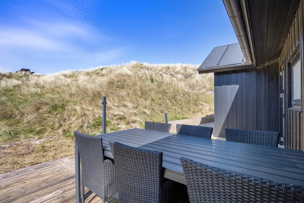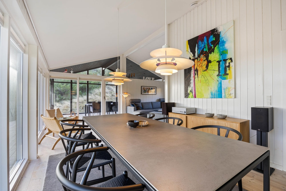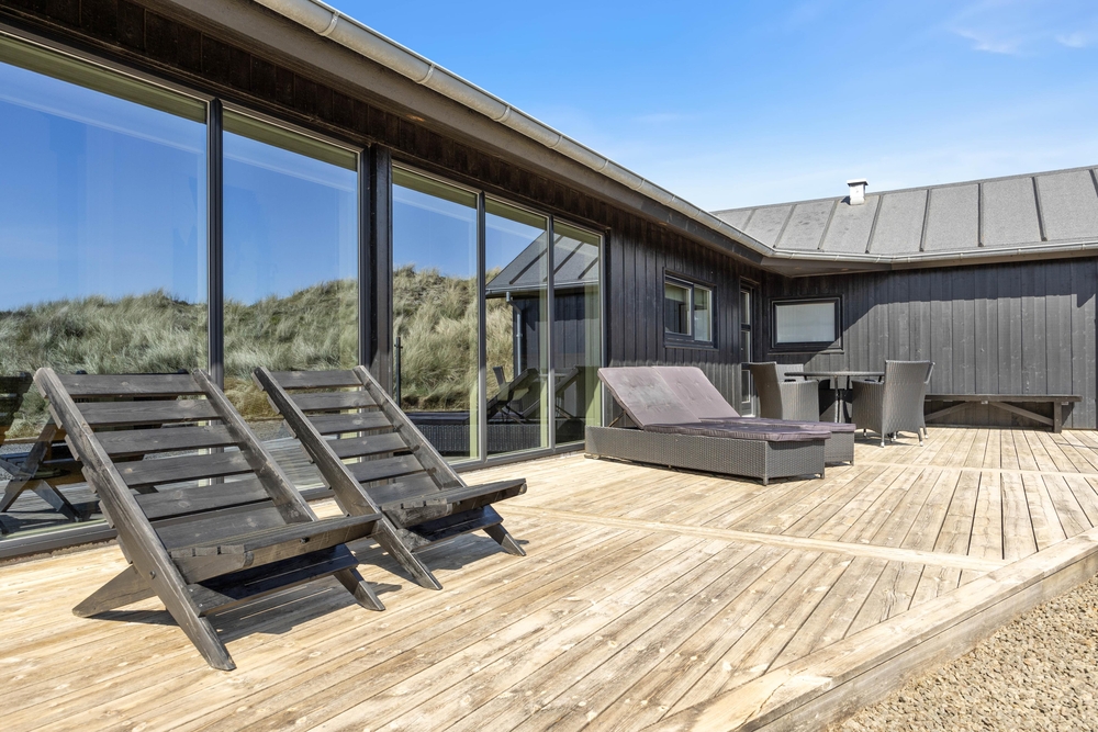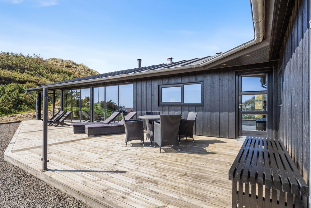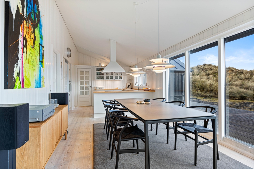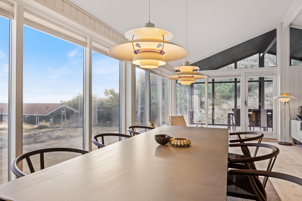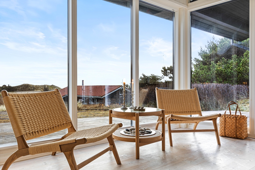 Ein weiteres Highlight sind die großen Fensterfronten des Ferienhauses, die einen großartigen Ausblick ermöglichen. Im Osten liegt der Ringkøbing Fjord und im Westen das Meer. So habt Ihr sowohl den Sonnenaufgang als auch den Sonnenuntergang im Blick.