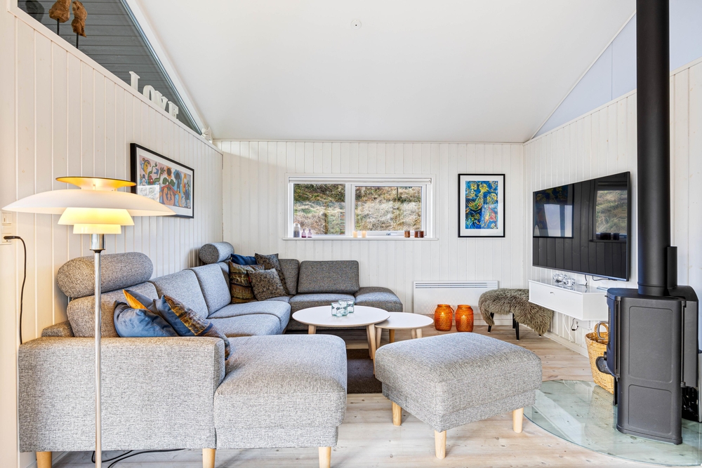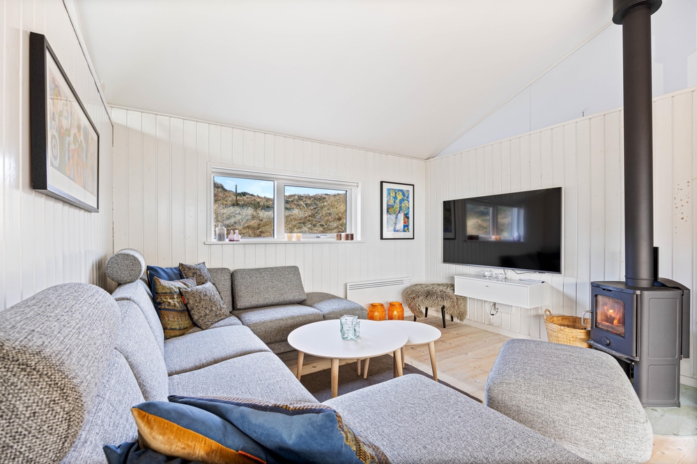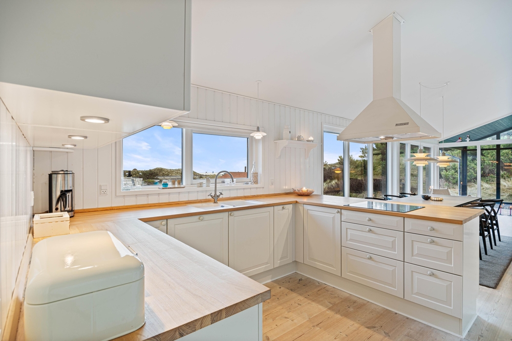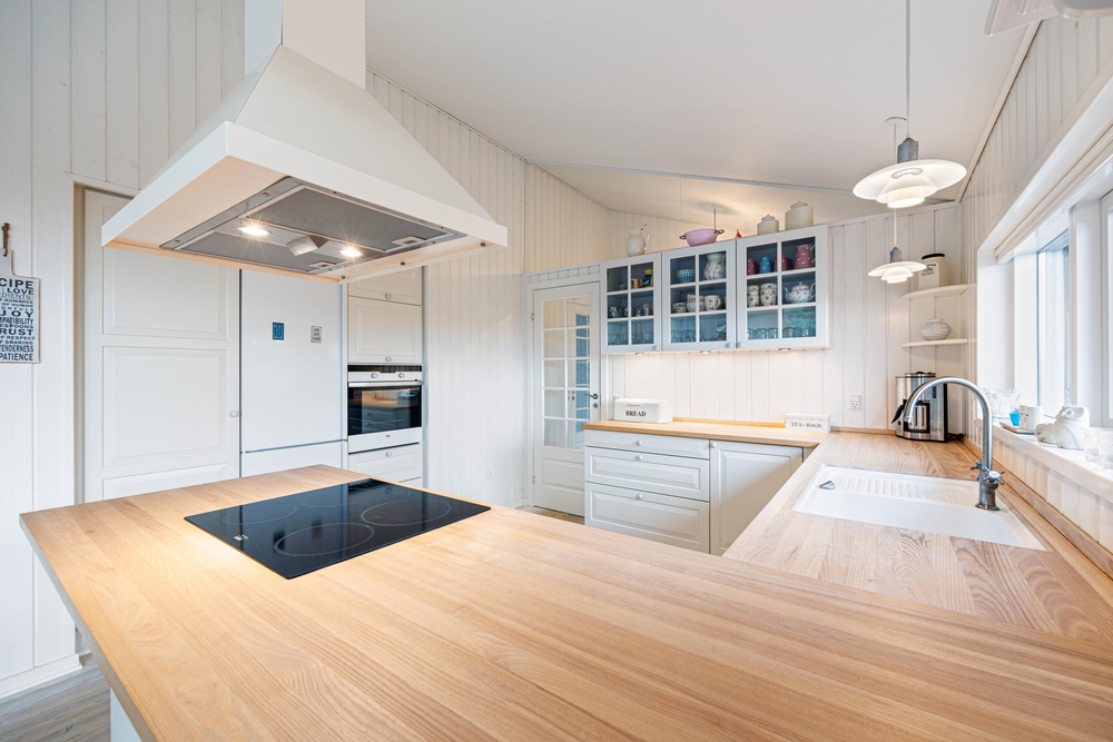 Sobald Ihr das Ferienhaus betretet, verspürt Ihr den Charme eines traditionellen Ferienhauses mit einem modernen Touch. Die hellen Böden, die weißen Holzwände und die helle Einrichtung sorgen für Urlaubsstimmung. Herzstück des Ferienhauses ist der offene Wohn-, Ess- und Kochbereich. Hier gibt es ausreichend Platz für gemeinsames Kochen, Spiele spielen und nette Gespräche am Esszimmertisch. Das große, bequeme Ecksofa lädt zu einem gemeinsamen, entspannten Fernsehabend ein. Deutsche Programme sind verfügbar.
