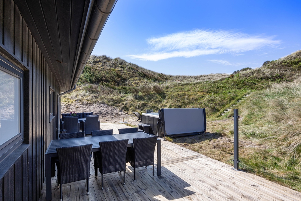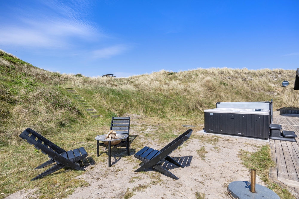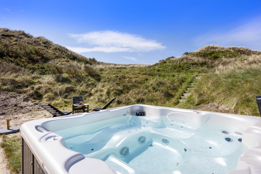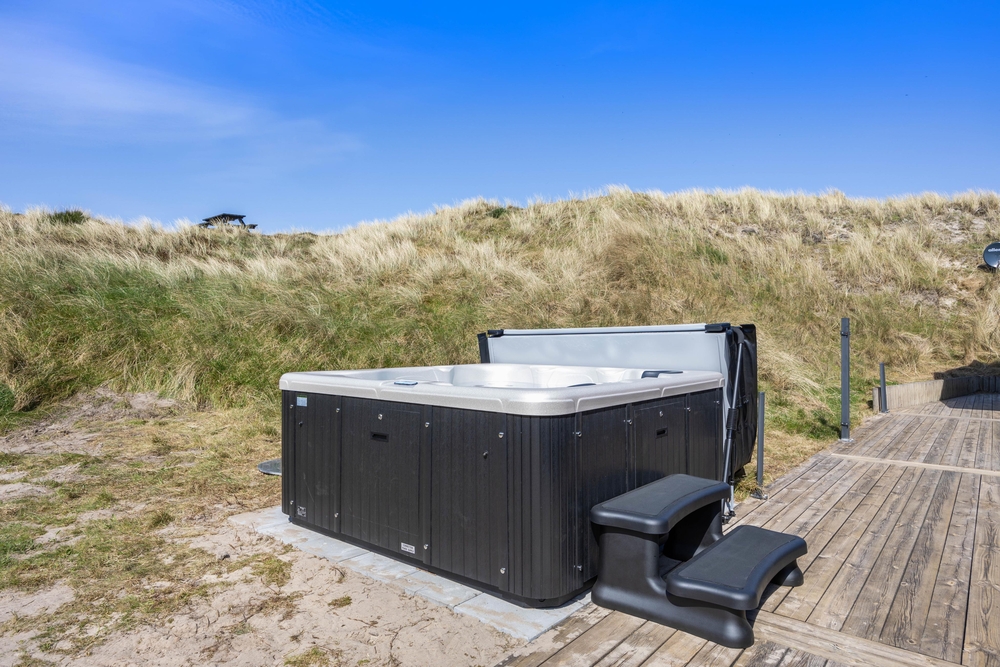 Auf dem 10725 qm großen Dünengrundstück findet Ihr eine geschützte und überdachte Terrasse mit Gartenmöbeln, Sonnenliegen und einem Grill. Dies ist der perfekte Ort, um hier an warmen Sommertagen und -abenden die Zeit zu verbringen und wenn es etwas kälter wird, könnt Ihr den Heizstrahler einschalten und weiterhin draußen die frische Nordseeluft genießen. Der Aussenwhirlpool bietet Platz für 6 Personen und lädt zu geselligen Stunden und regenerierenden Wellnessmomenten ein. Die Außendusche sorgt für Abkühlung und befreit die Füsse vom Strandsand. Sie steht euch in den Monaten von April bis November zur Verfügung.