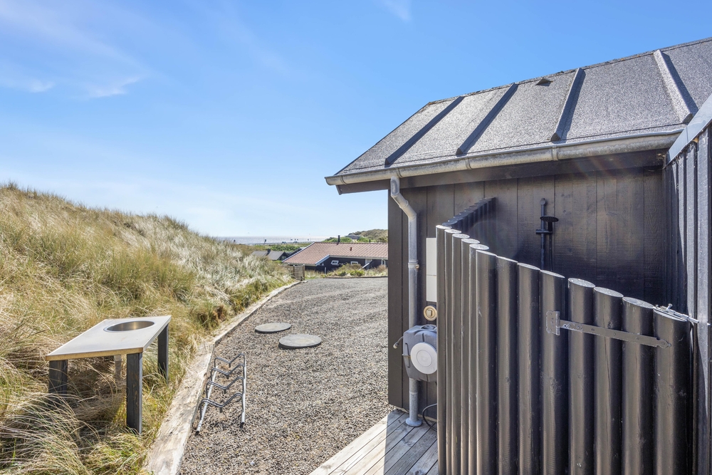 Die Nordsee liegt nur 250 m von Eurem Ferienhaus entfernt. Ein kurzer Weg durch die fast unberührte Dünenlandschaft bringt Euch direkt zum Strand. Zurück am Ferienhaus gibt es eine Außendusche, um den Sand von den Füssen zu spülen.