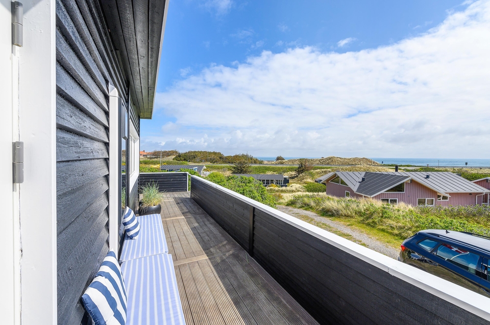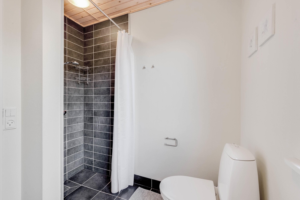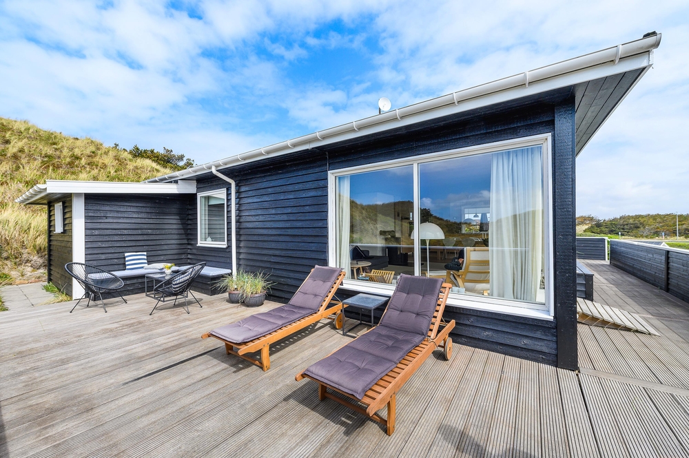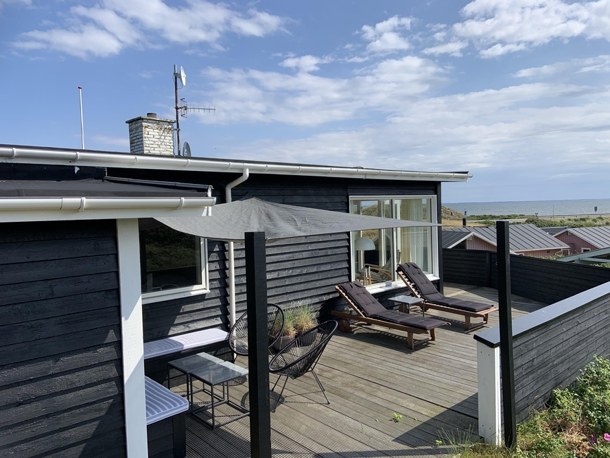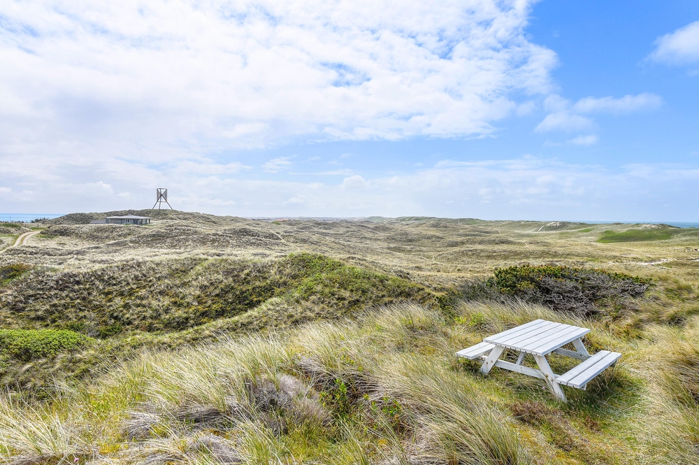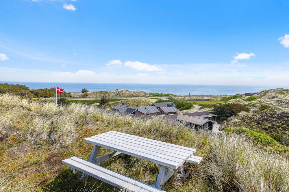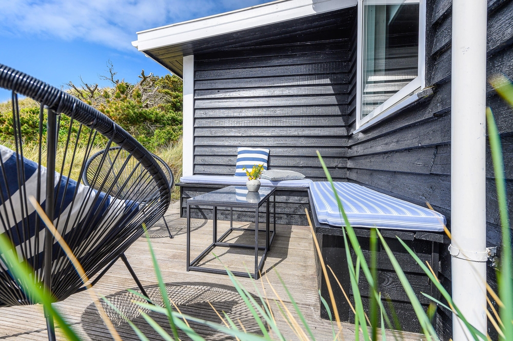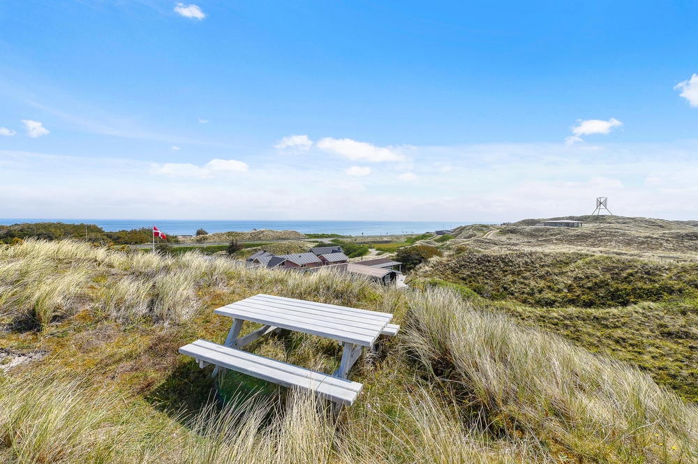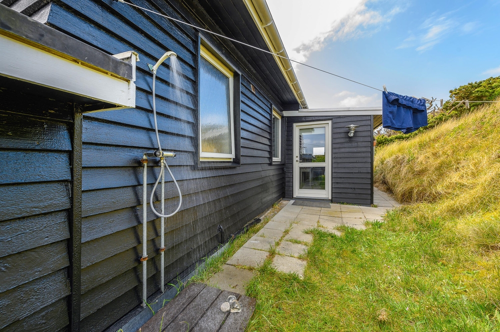 Das ganze Haus ist von einer herrlichen, abgeschirmten Terrasse umgeben, die mit guten und bequemen Gartenmöbeln ausgestattet ist. Ihr könnt dem Verlauf der Sonne folgen und den ganzen Tag wahlweise ein sonniges oder schattiges Plätzchen finden. Beim Frühstück auf der Terrasse habt ihr eine herrliche Aussicht über den Ringköbing Fjord. Besonders praktisch nach einem ausgiebigen Spaziergang am Strand ist die Aussendusche, die von April bis November benutzt werden kann.