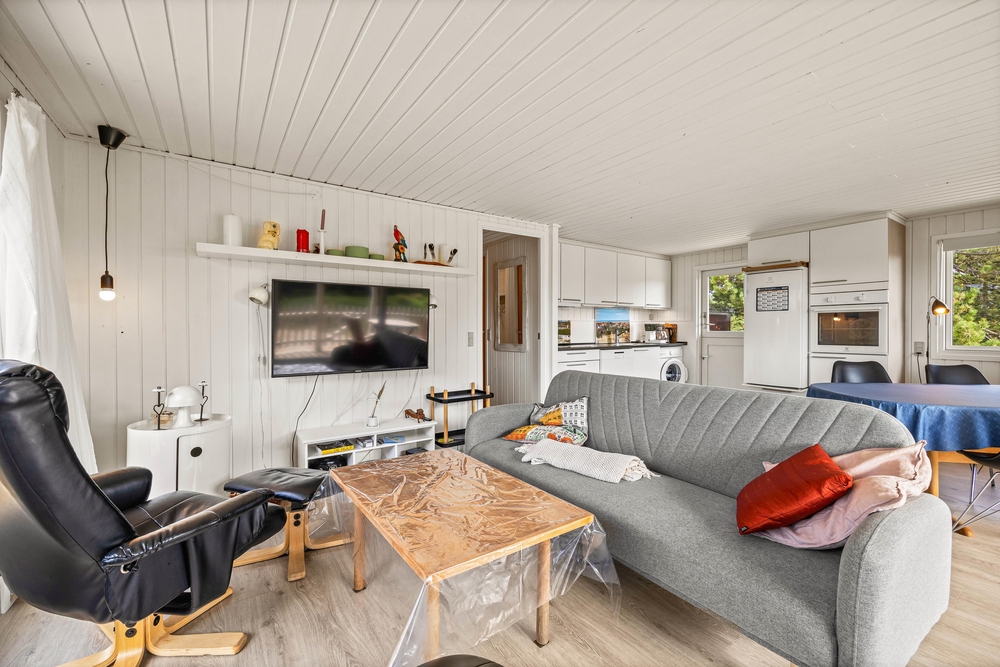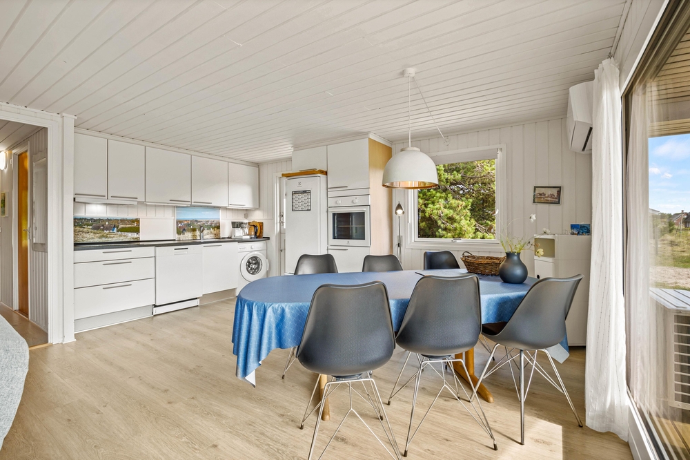 Das 65 Quadratmeter große Ferienhaus liegt etwas abgelegen, abseits von der Straße und bietet euch die nötige Ruhe, um euren Urlaub zu genießen. Die helle und geräumige Inneneinrichtung strahlt Gemütlichkeit aus und das große Wohnzimmer mit der Küche, bieten den perfekten Rahmen für viele angenehme, gemeinsame Tage. Die gut ausgestattete Küche mit Geschirrspüler und Waschmaschine ist offen mit dem Wohn- und Essbereich verbunden, in dem ihr euch zu einem Brettspiel, oder einem gemütlichen Abend vor dem Fernseher, mit dem leisen Knistern des Holzofens im Hintergrund, versammeln könnt.