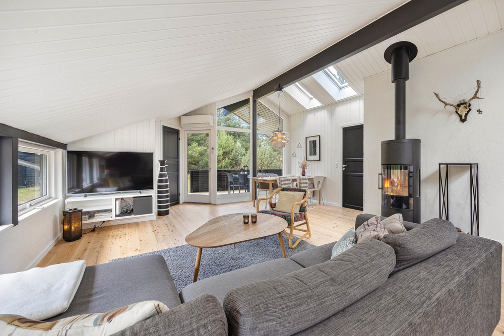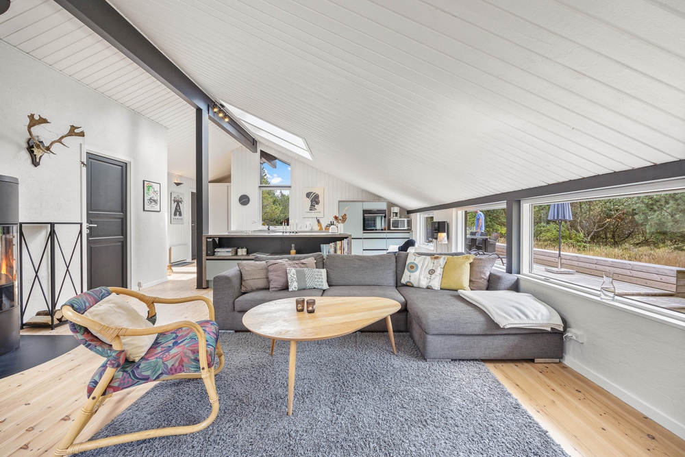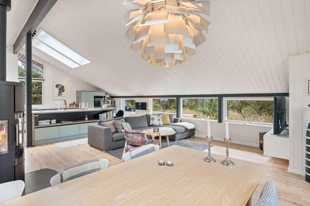 Die großen Panoramafenster sowie die Oberlichter sorgen dafür, dass das Ferienhaus herrlich lichtdurchflutet ist. Hier könnt ihr im Kreise eurer Familie oder Freunde viele schöne Ferienstunden verbringen. Die vielen gemütlichen Sitzgelegenheiten laden zu gemütlichen Spieleabenden oder anderen Gemeinsamkeiten, wie dem Schauen spannender Filme ein.