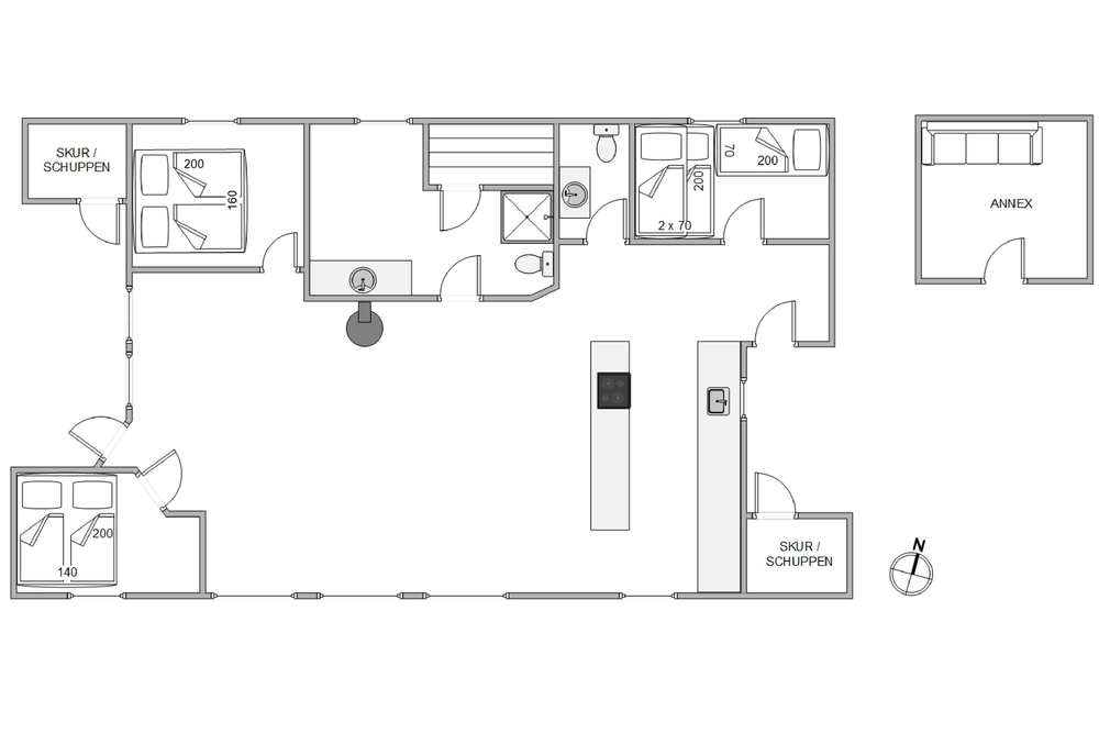 Die große Wiese lädt Groß und Klein zum Ballspielen und Toben ein. Hier auf Søndervang 119 in Houstrup, in diesem tollen Haus an der dänischen Westküste, kann die ganze Familie die Natur entdecken. Ein Anneks, ein kleines Nebengebäude, steht ebenfalls zur Nutzung bereit.