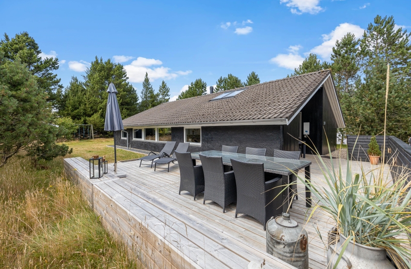 Draußen trefft ihr auf 2 schöne Terrassen, wo ihr viele tolle Grillabende und sonnige Stunden verbringen könnt. Unter der überdachten Terrasse könnt ihr windgeschützt das Wetter der dänischen Westküste genießen, egal ob die Sonne lacht oder der Regen fällt.
