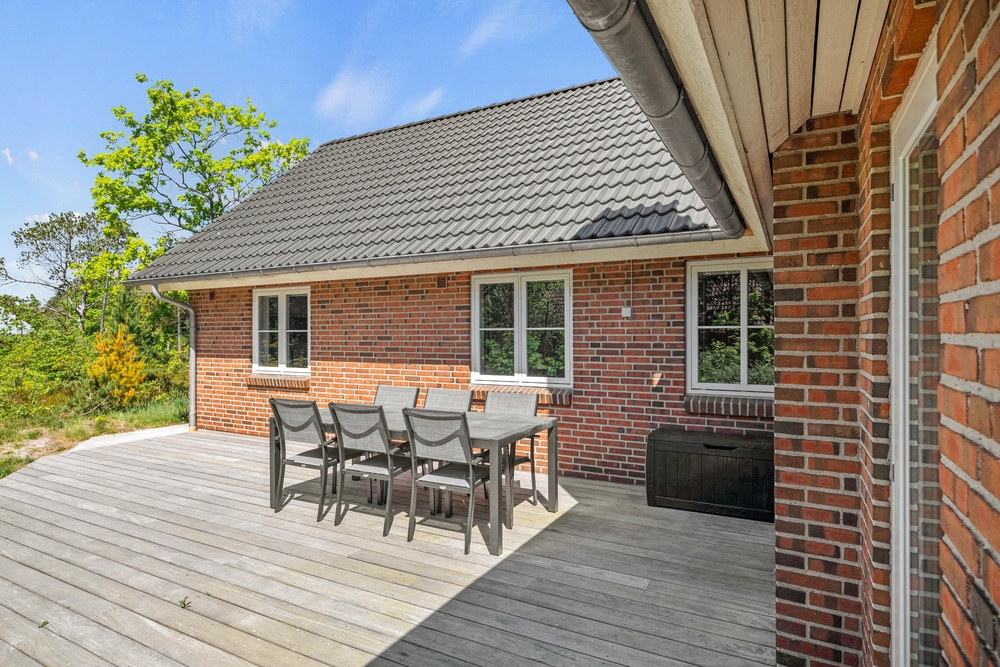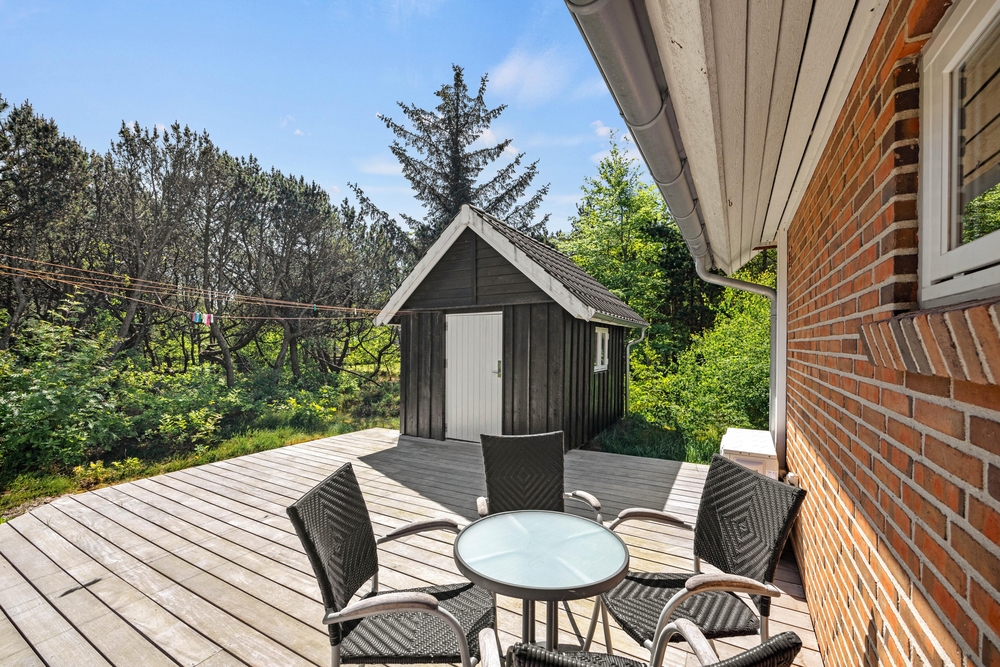 Das Ferienhaus, welches eine tolle Holzterrasse in Süd-West-Ausrichtung besitzt, ist sowohl gut für einen Familienurlaub oder aber für ein oder zwei befreundete Paare geeignet. Die Lage auf Søndervang 128 ist trotz des Eckgrundstückes ruhig und nur einen Katzensprung entfernt liegt der Campingplatz, wo ihr z. B. frische Brötchen und andere Kleinigkeiten erhaltet.
