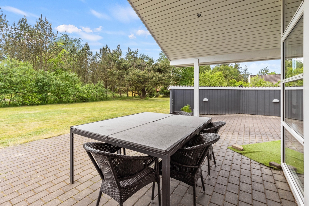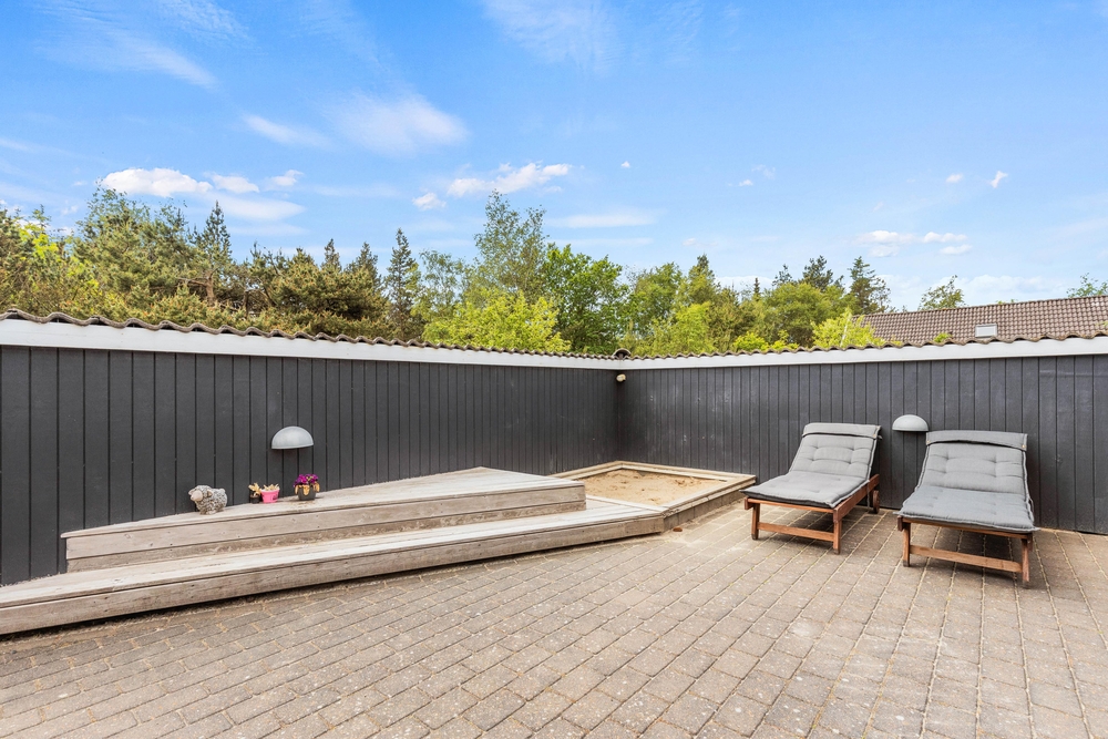 Die große Terrasse hat jede Menge kleine Gemütlichkeitszonen, von denen aus ihr das Wetter mit der wunderbaren Umgebung bestens ausnutzen könnt. Der Zaun sorgt dafür, dass ihr ungestört ein leckeres Mittagessen oder das hervorragende Grillmahl an lauen Sommerabenden verputzen könnt.