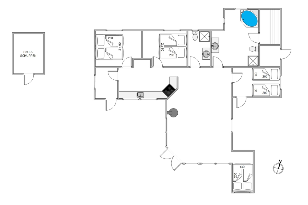 Auf Søndervang 129 bewohnt ihr ein richtig tolles Ferienhaus mit allem, was ihr während eures Urlaubs benötigt. Hier ist Platz für bis zu 8 Personen und in 2 der Schlafzimmer sorgen höhenverstellbare Betten für besonderen Komfort. Einrichtungsmässig fehlt es an nichts. Es wurde an die praktischen Dinge wie Geschirrspüler, Gäste-WC, Waschmaschine und Wäschetrockner gedacht und das gewisse Etwas bieten Sauna und ein Standwasserwhirlpool.