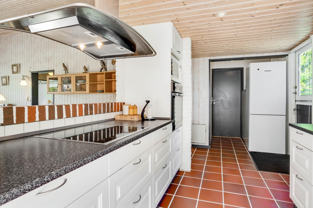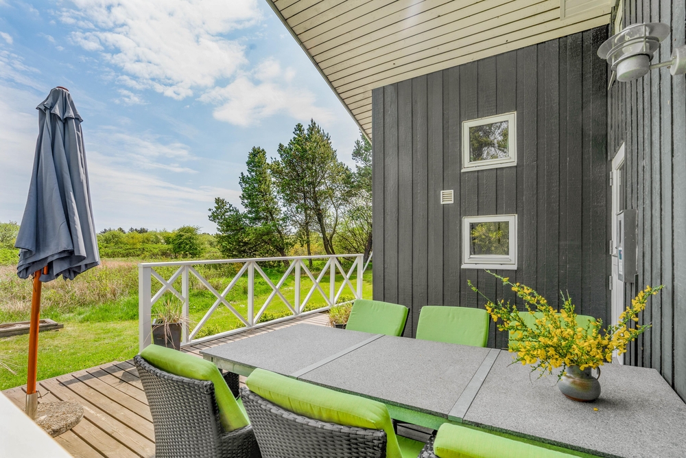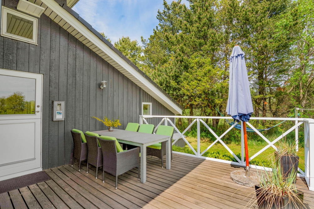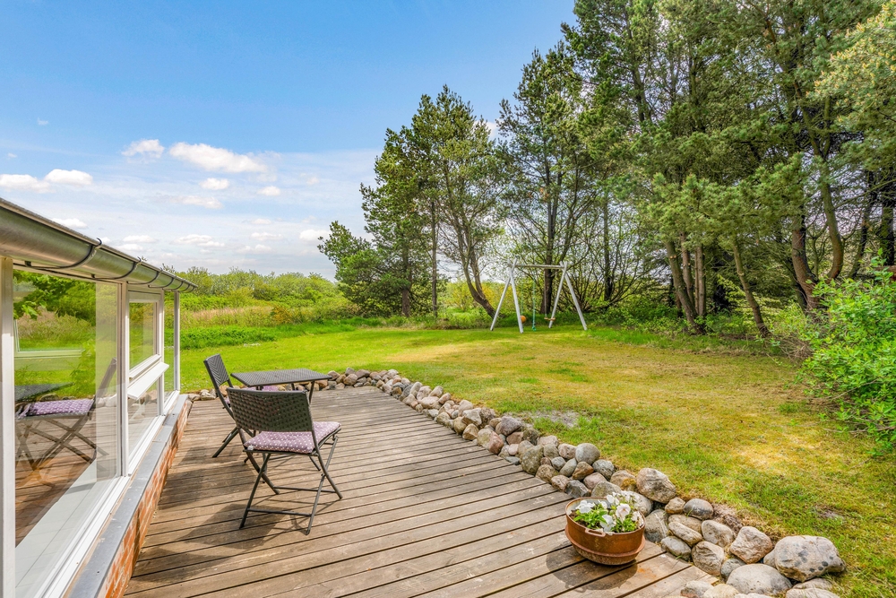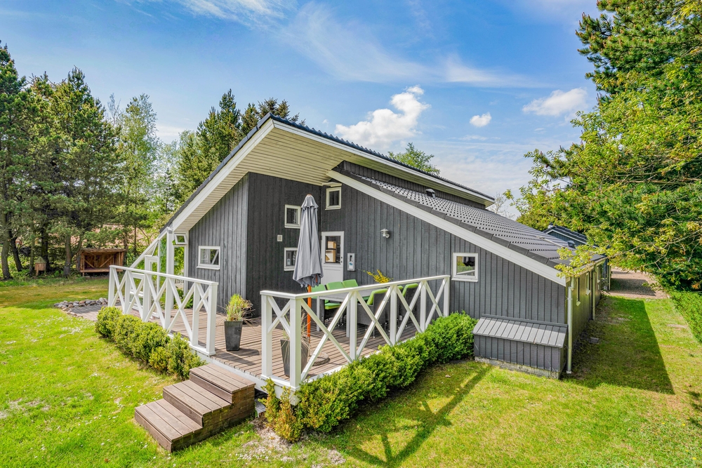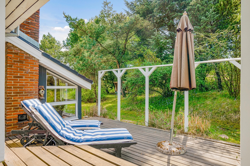 Das Ferienhaus verfügt über gleich drei Terrassen und viele schöne Ecken, wo ihr euch mit einem guten Buch zurückziehen und entspannen könnt. Das Grundstück ist von hohen Bäumen umgeben und sorgt somit für die gewisse Privatsphäre. Während ihr auf der Sonnenliege oder im Gartenstuhl relaxt, können die Kids auf dem Rasen spielen und sich austoben.