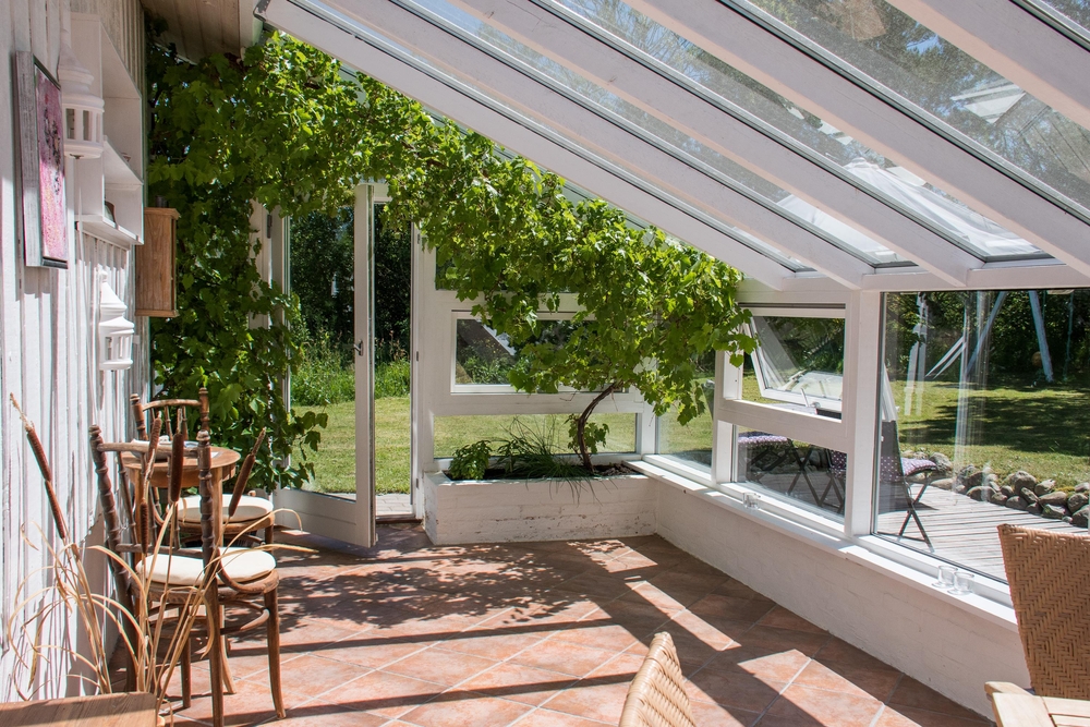 Durch den gemütlichen Wintergarten könnt ihr die Natur bei jedem Wetter genießen. Trinkt euren Kaffee bei einem leckeren dänischen Kuchen und genießt die Aussicht auf den Garten oder spielt eine Runde Karten, während der Regen an die Fenster peitscht.