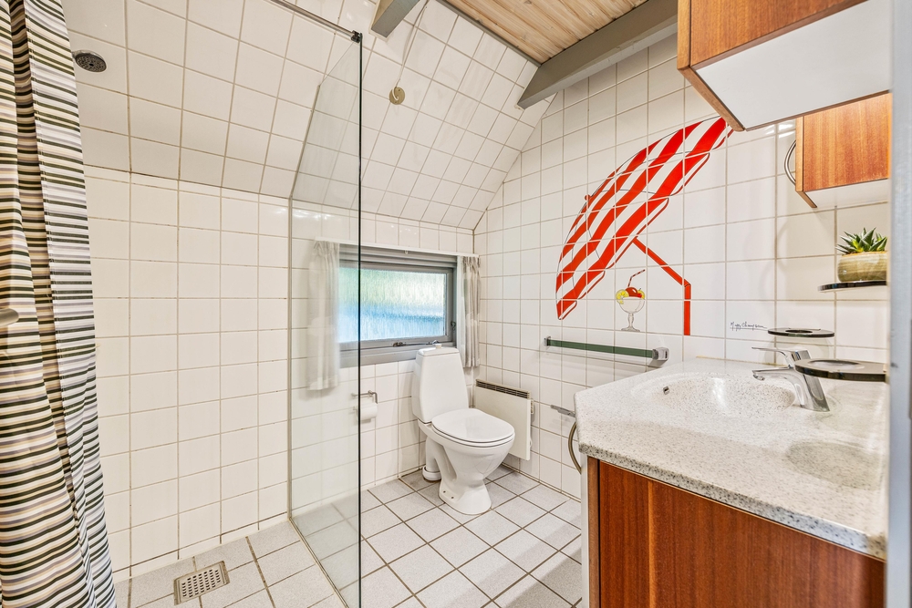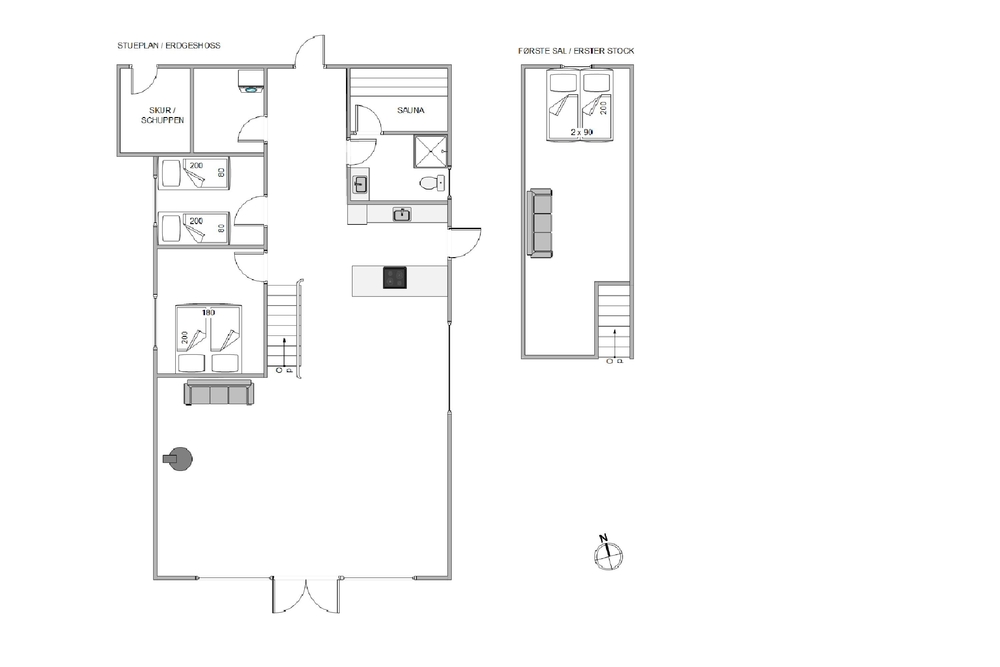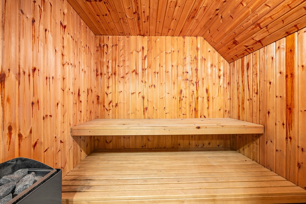 Im Erdgeschoss befinden sich 2 Schlafräume mit Doppelbetten und ein Badezimmer mit einer schönen Sauna.