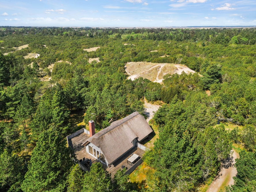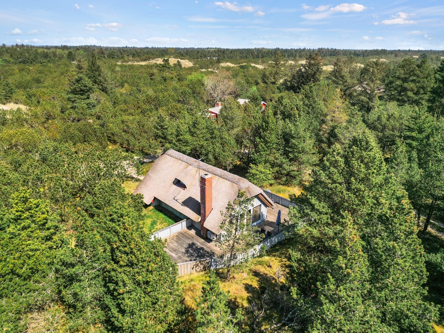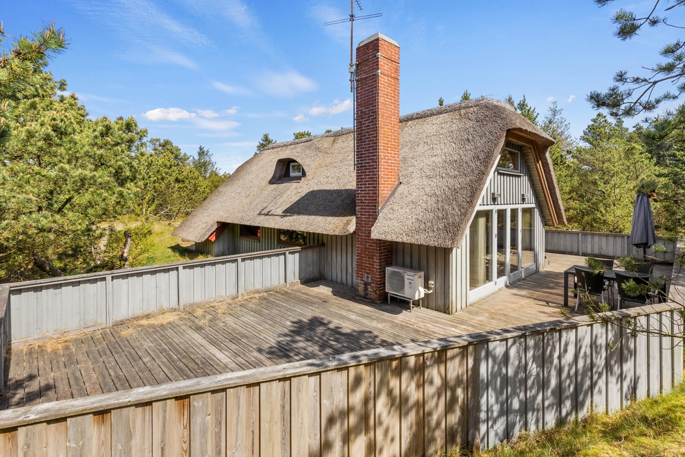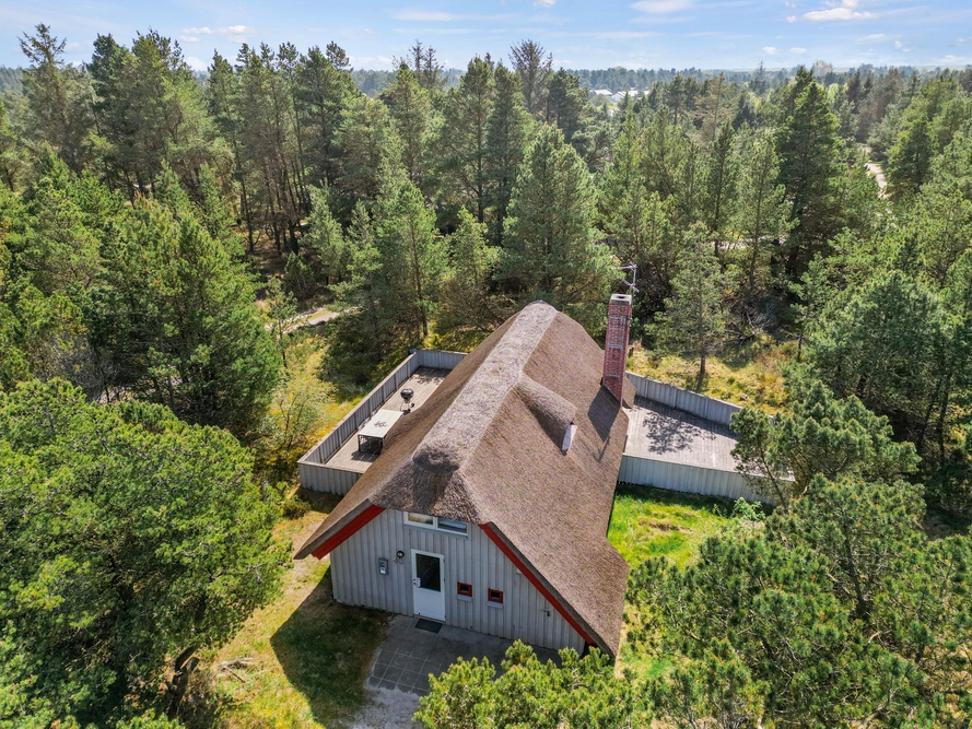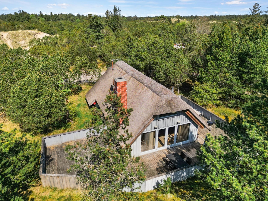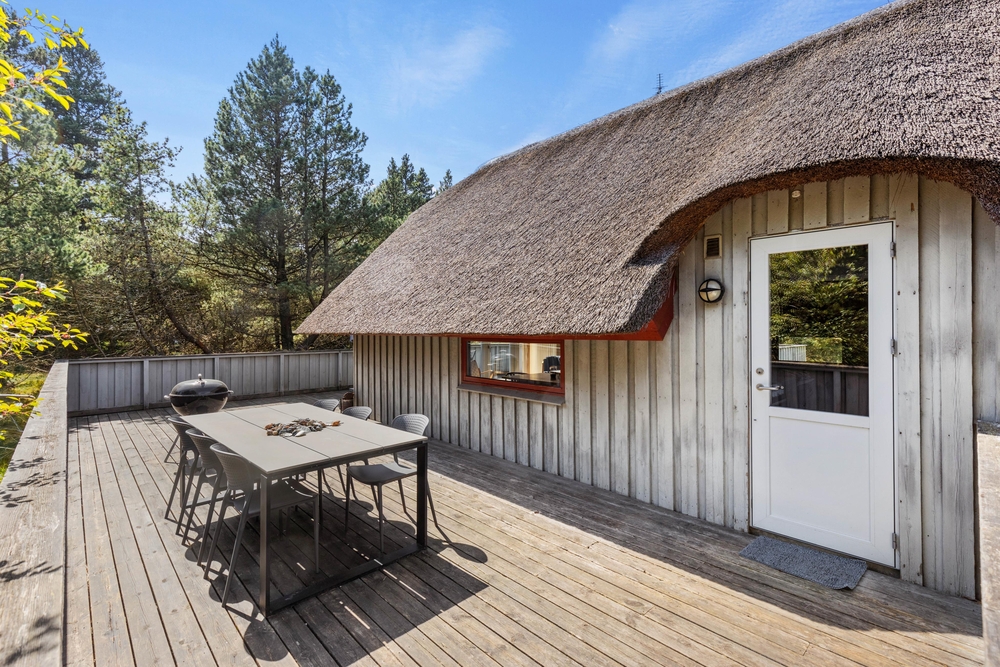 Dieses gemütliche Reetdachhaus am Søren Gades Mark 43 hat wohnlichen Charme und liegt auf einem ungestörten Naturgrundstück umgeben von Nadelbäumchen am Ende einer Sackgasse. Hier ist Platz für 6 Personen und ihr könnt bis zu 2 Hunde mitbringen.