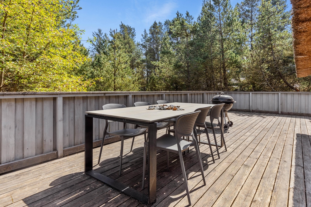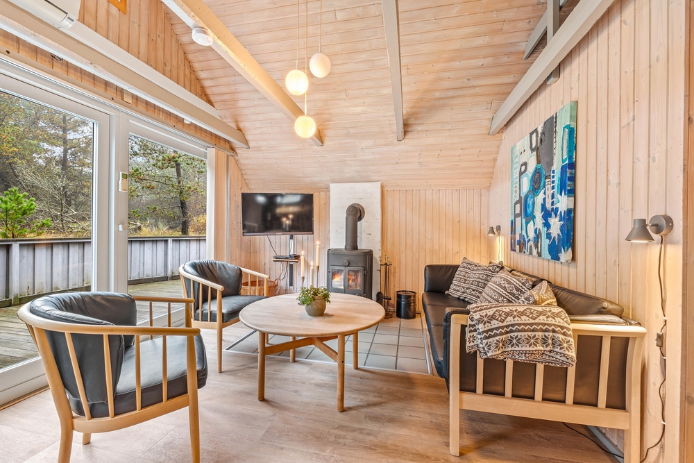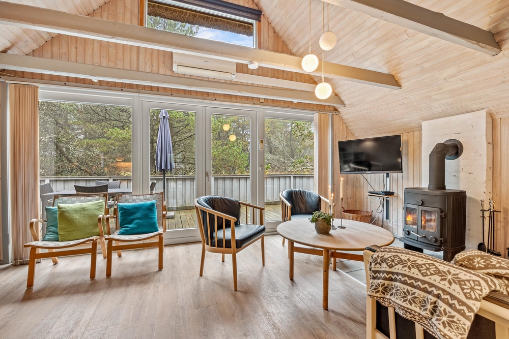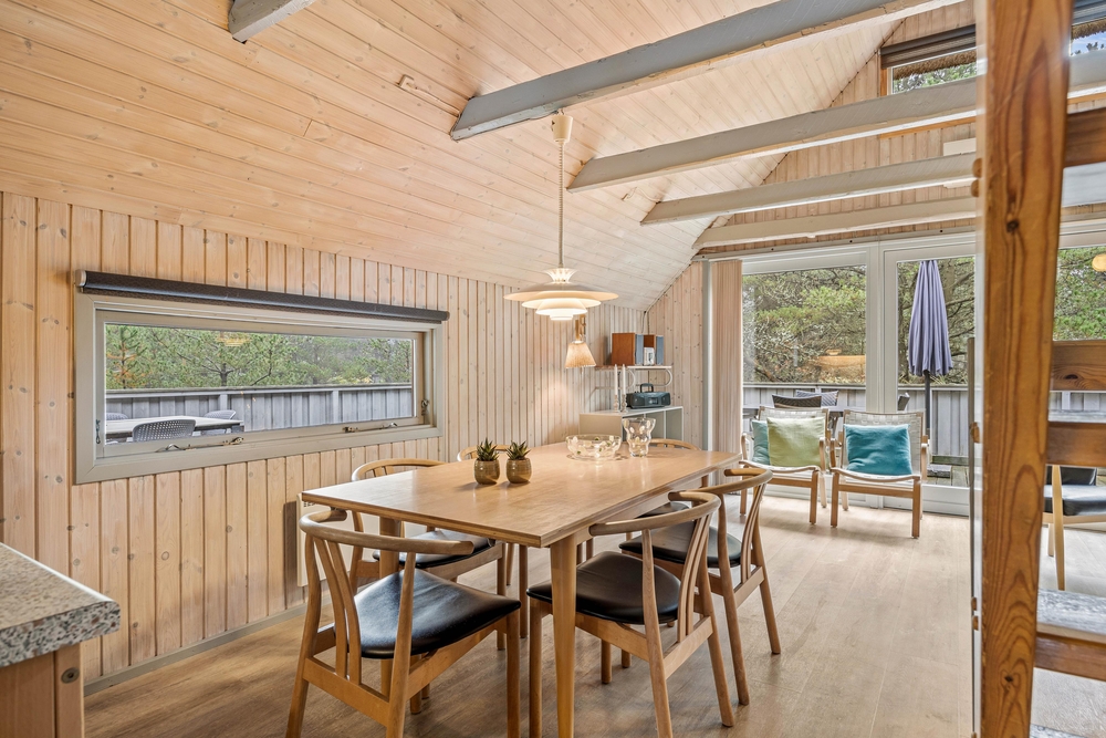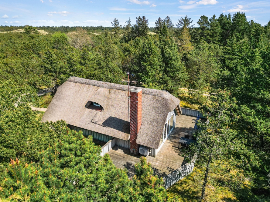 Dieses gemütliche Reetdachhaus am Søren Gades Mark 43 hat wohnlichen Charme und liegt auf einem ungestörten Naturgrundstück umgeben von Nadelbäumchen am Ende einer Sackgasse. Hier ist Platz für 6 Personen und ihr könnt bis zu 2 Hunde mitbringen.