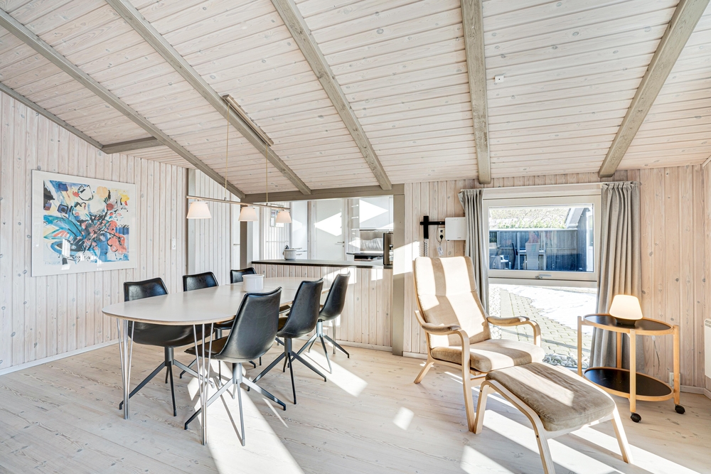 Das Herzstück des Hauses bildet der helle Wohn- und Essbereich, der ein geselliges Beisammensein in eurem Urlaub ermöglicht. Am großen Esstisch finden alle Platz. Die Küche ist mit einem Geschirrspüler ausgestattet, der nach dem gemeinsamen Essen den Abwasch übernimmt. Sie ist offen zum Wohnbereich, so dass ihr auch beim Kochen alles gut im Blick habt.