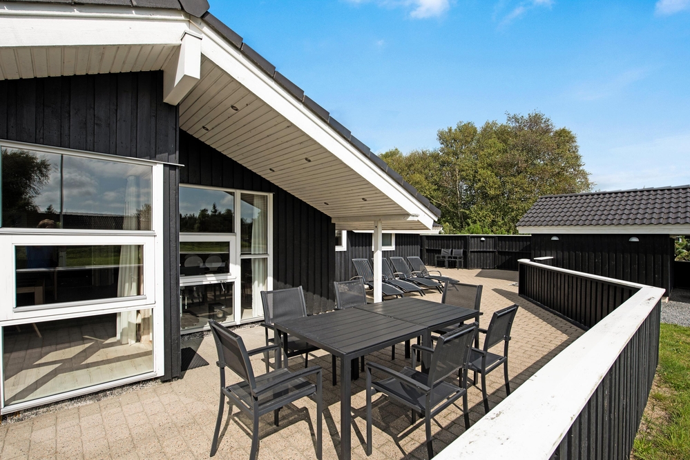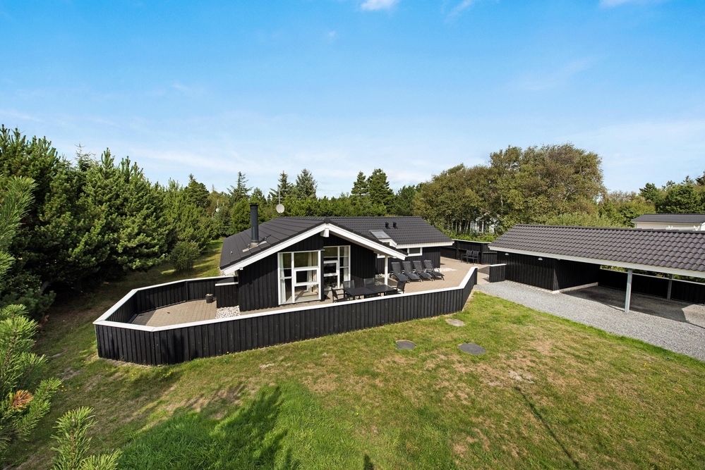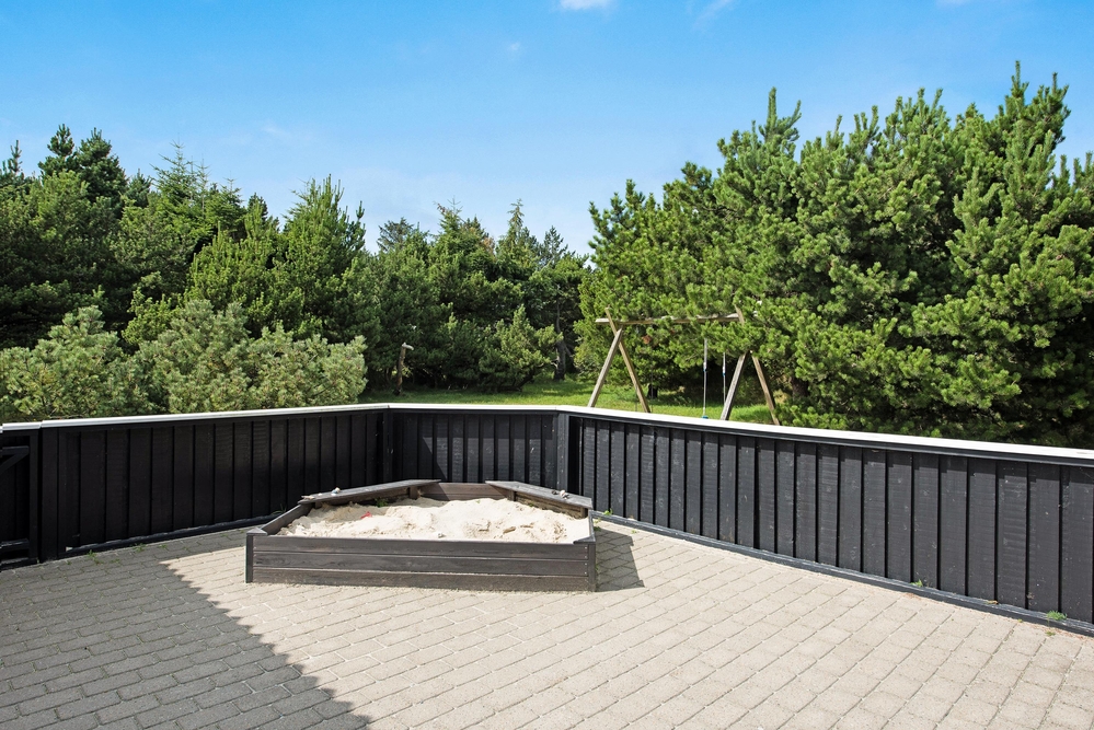 Auf die teilweise überdachte und umzäunte Terrasse gelangt ihr vom Wohnbereich aus. Diese umgibt das ganze Haus und ist möbeliert, so dass ihr auch hier gemeinsam Grillen, Essen und die frische Luft in vollen Zügen genießen werdet. Umgeben von einem großen Grundstück, liegt das Ferienhaus im Grünen und verfügt über eine Schaukel und einen Sandkasten zum Spielen für die Kinder. Außerdem gibt es ein Carport, unter dem euer Auto gut geschützt parken kann.