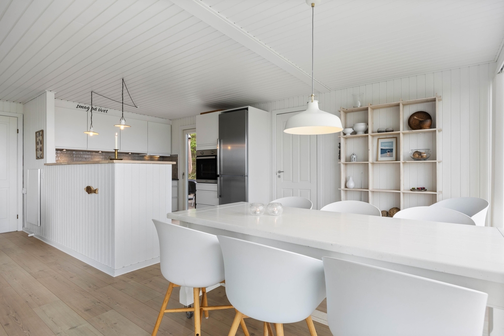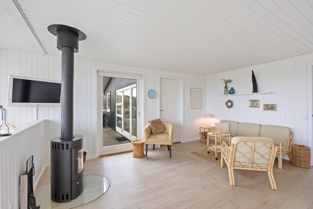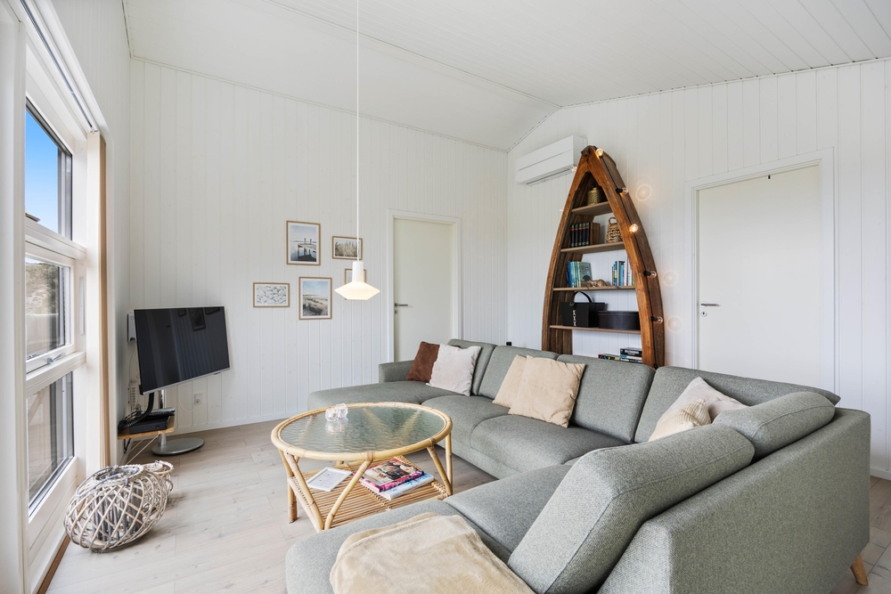 Hell und einladend ist der Eindruck, der euch empfängt, wenn ihr das Ferienhaus in Houvig betretet. Es hat eine ganz besondere Atmosphäre, die eine moderne Einrichtung, gemütliche Landhaus- und Hotelatmosphäre miteinander verbindet. Das liegt an der wunderbaren Mischung aus verschiedenen Elementen, wie bequemen Möbeln, exklusiven Materialien und getäfelten Wänden, die sich zu einem Ganzen zusammenfügen. Ihr werdet euch in dem Ferienhaus zweifellos sofort zu Hause fühlen.