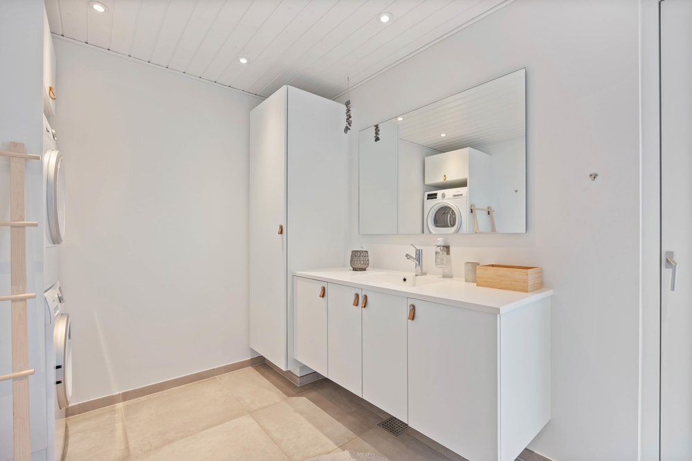 Das Ferienhaus bietet Platz für insgesamt 8 Personen in 4 Schlafzimmern. Drei der Zimmer sind mit einem Doppelbett ausgestattet, während das letzte Zimmer über ein ausziehbare Bett für 2 Personen verfügt (jede Matratze hat die Maße 90cmX200cm). Außerdem gibt es ein sehr schönes Badezimmer aus schönen, exklusiven Materialien, in dem Platz für eine Dusche, Waschmaschine und Trockner geschaffen wurde.