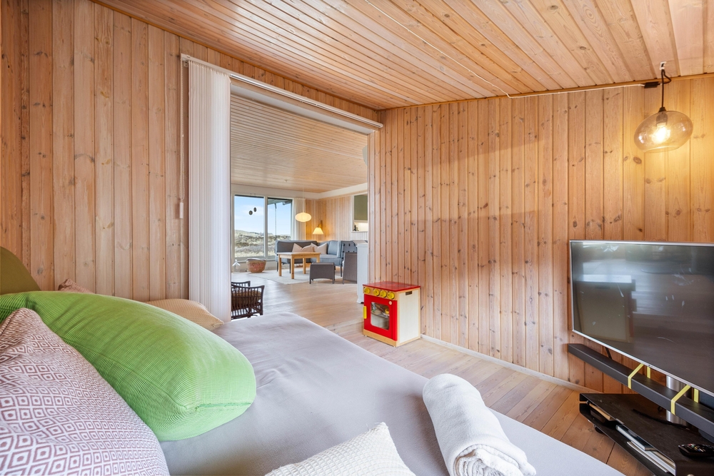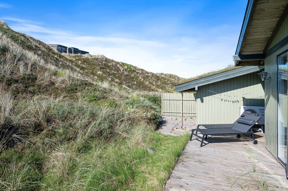 Das Ferienhaus im Sortebærdalen 61 liegt auf einem großen Dünen- und Naturgrundstück in den Dünen. Hier haben eure Kinder genügend Platz, um die Gegend zu erkunden, während ihr es euch auf der Terrasse mit einem Kaltgetränk gemütlich. Damit ihr noch mehr Platz auf der Terrasse habt, könnt ihr einen Teil des Wintergartens öffnen und den Wintergarten mitbenutzt und abgeschirmt vom Wind sitzen.