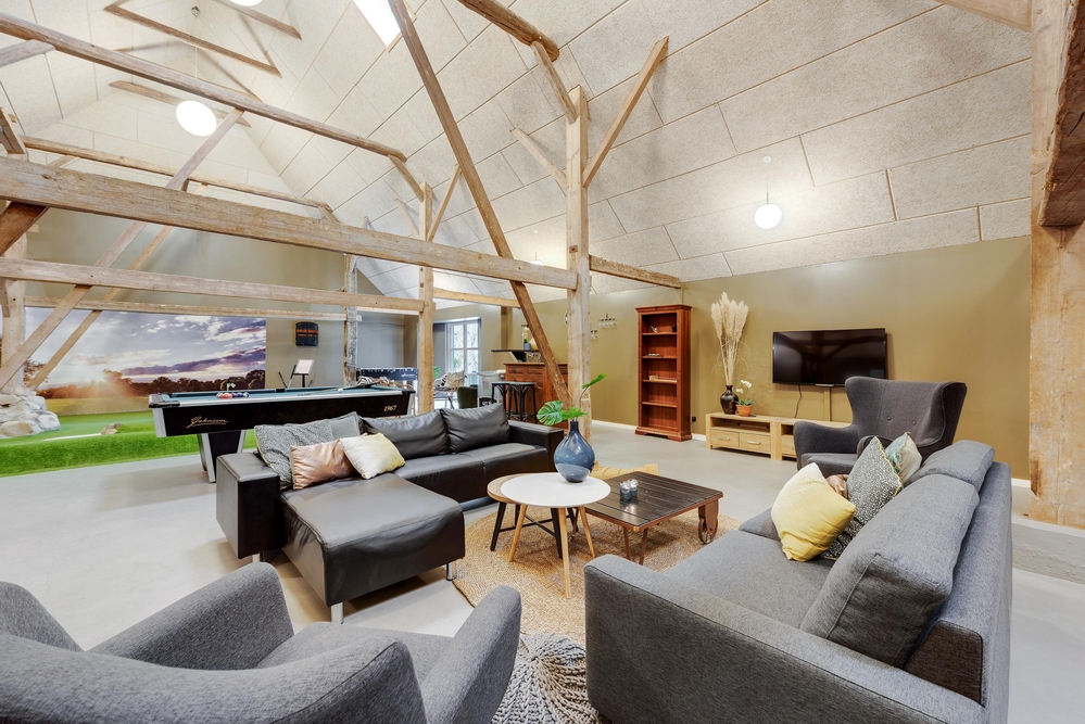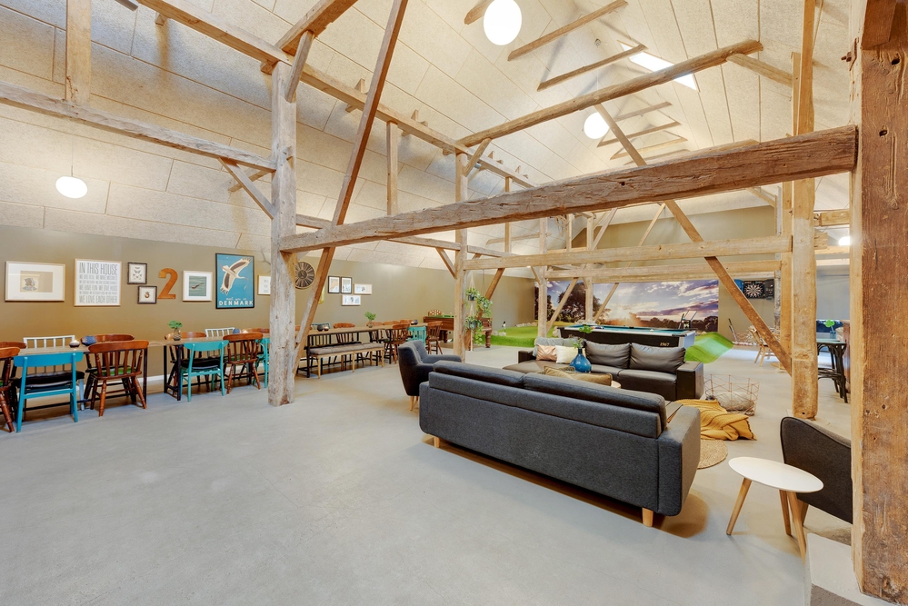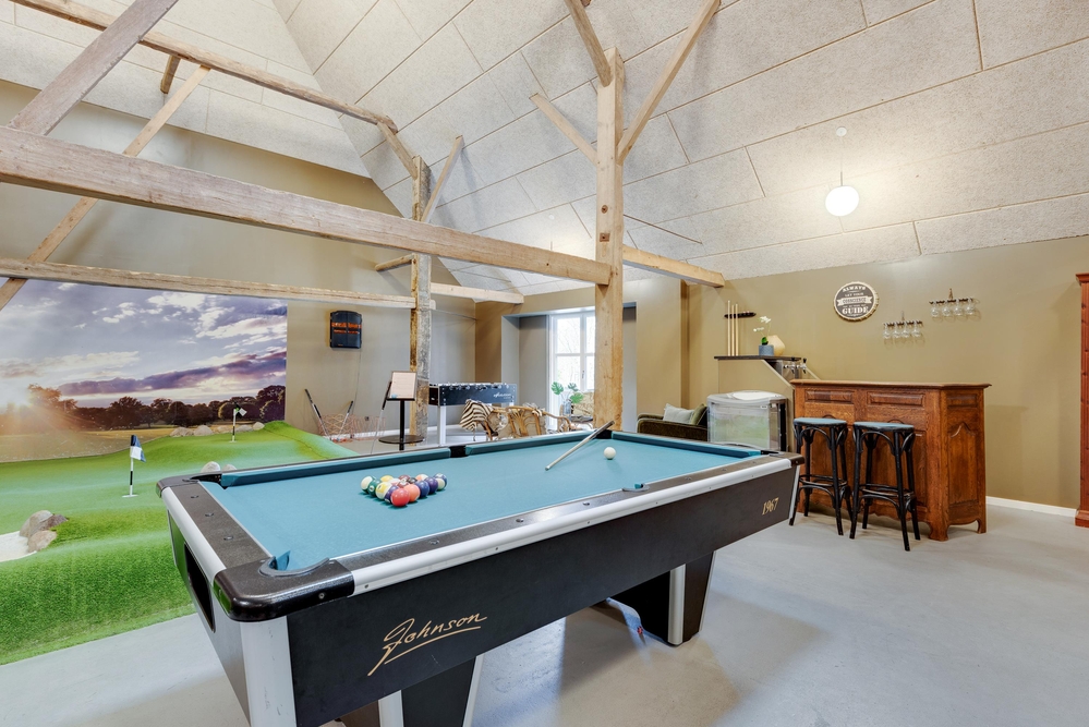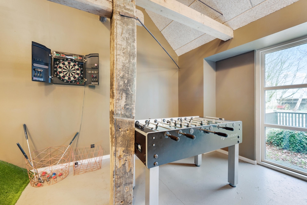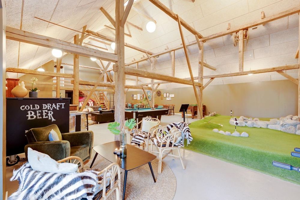 Schon im Inneren des Hauses werdet ihr mit einer Vielzahl von Aktivitäten verwöhnt. Ihr könnt euch zwischen Minigolf, Billard, Tischkicker, Darts und noch vielem mehr entscheiden, wenn ihr euch gegenseitig duellieren wollt. Wer es etwas gemütlicher mag, kann sich an die hauseigene Bar begeben, wo sogar eine Fassbieranlage installiert wurde.