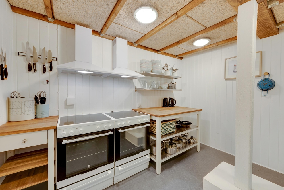 In der Küche sieht man doppelt: die Ausstattung reicht natürlich für euch alle und so gibt es zwei Geschirrspülmaschinen, zwei Backöfen und zwei Kühlschränke. Auch eine Waschmaschine und ein Wäschetrockner wurden nicht im Ferienhaus vergessen. Insgesamt gibt es 7 Doppelbetten und 10 Schlafsofas, sodass ihr euch wunderbar im ganzen Haus verteilen könnt. Auch zwei Badezimmer mit Fußbodenheizung und eine Toilette stehen euch zur Verfügung.