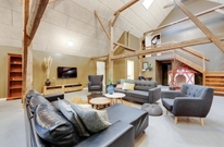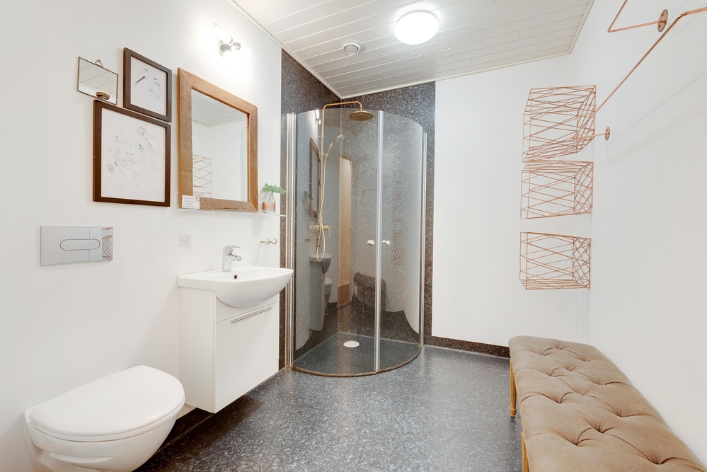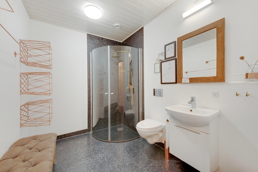 Hier bleibt definitiv kein Wunsch offen: auf insgesamt 350 Quadratmetern Wohnfläche, mit einem ca. 87 cm breitem Treppenaufgang können sich alle Mitreisenden zu einer Runde am Esstisch zusammensetzen oder in einer der Schlafzimmer oder Sofaecken zurückziehen. Die Einrichtung ist modern und die Architektur ist einzigartig durch die hohen Giebel.