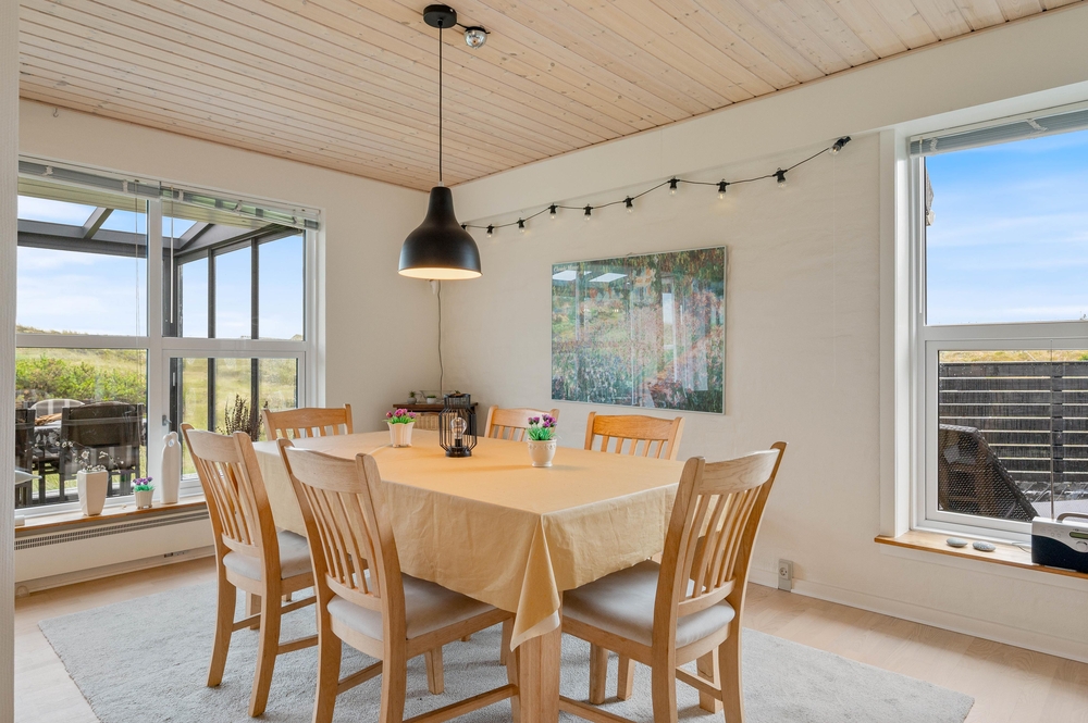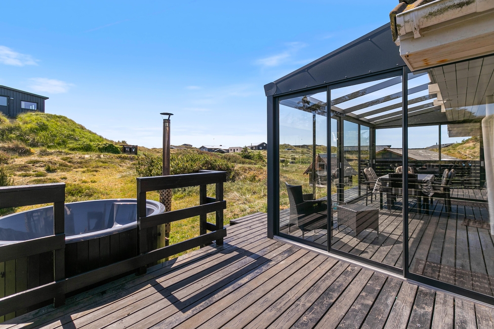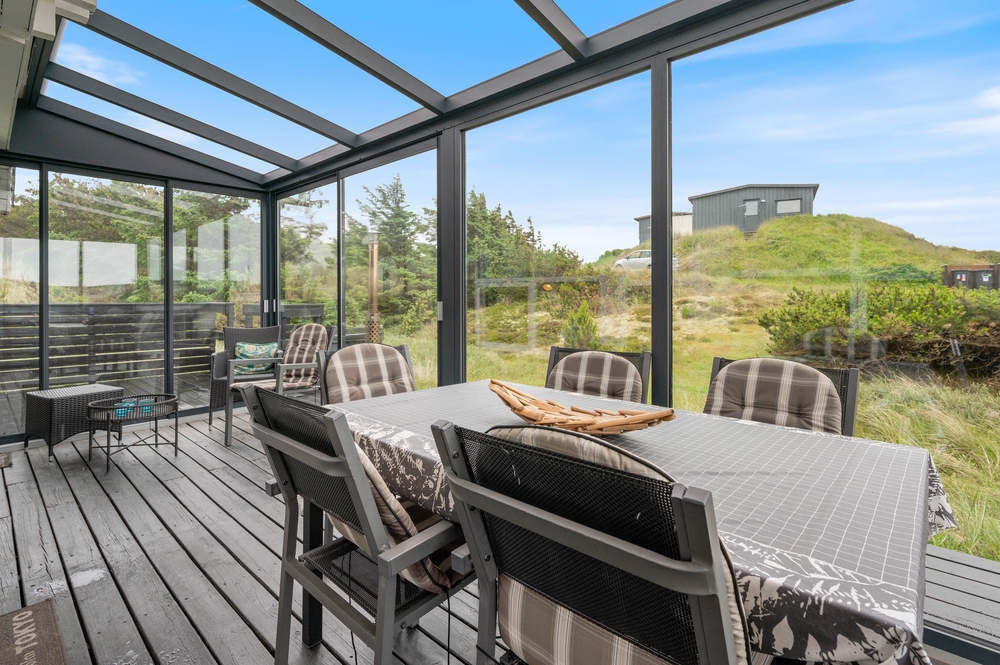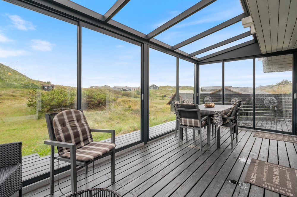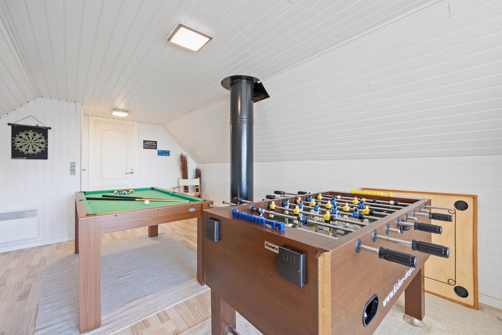 Vom Wohnzimmer aus habt ihr Zugang zu einem schönen Wintergarten, von dem aus ihr einen herrlichen Blick auf die Dünenlandschaft habt. Dies ist der perfekte Ort, um viele gemeinsame Stunden zu verbringen und es sich mit einem kühlen Getränk oder einer schönen heißen Tasse Kaffee gemütlich zu machen. Oben im ersten Stock können ihr den Champion des Urlaubs bei einer Partie Billard oder Tischfußball krönen. Es gibt auch einen kleinen Balkon, auf dem ihr die Aussicht genießen könnt.