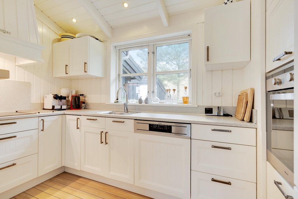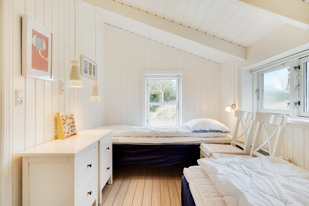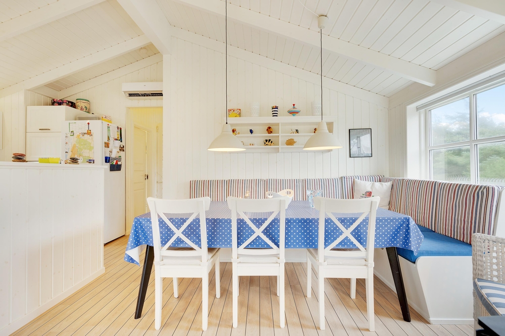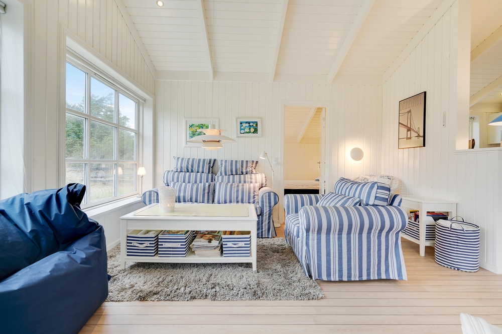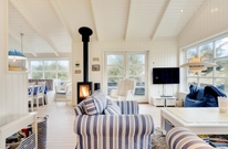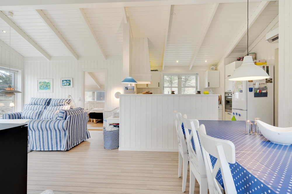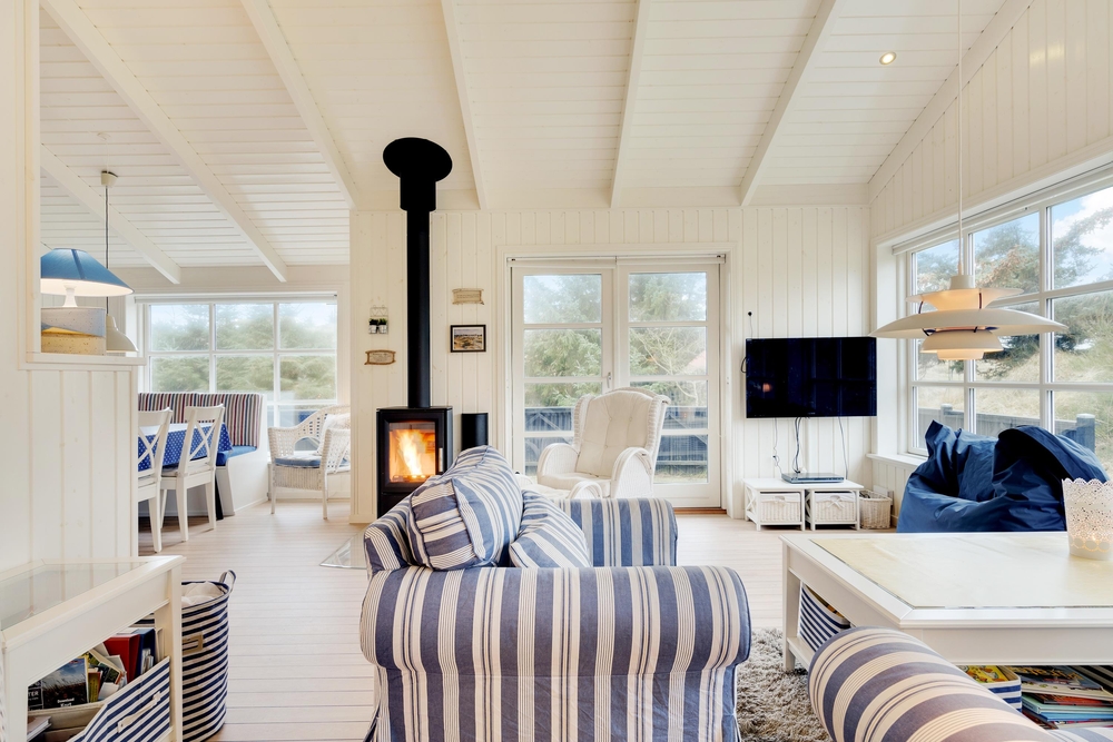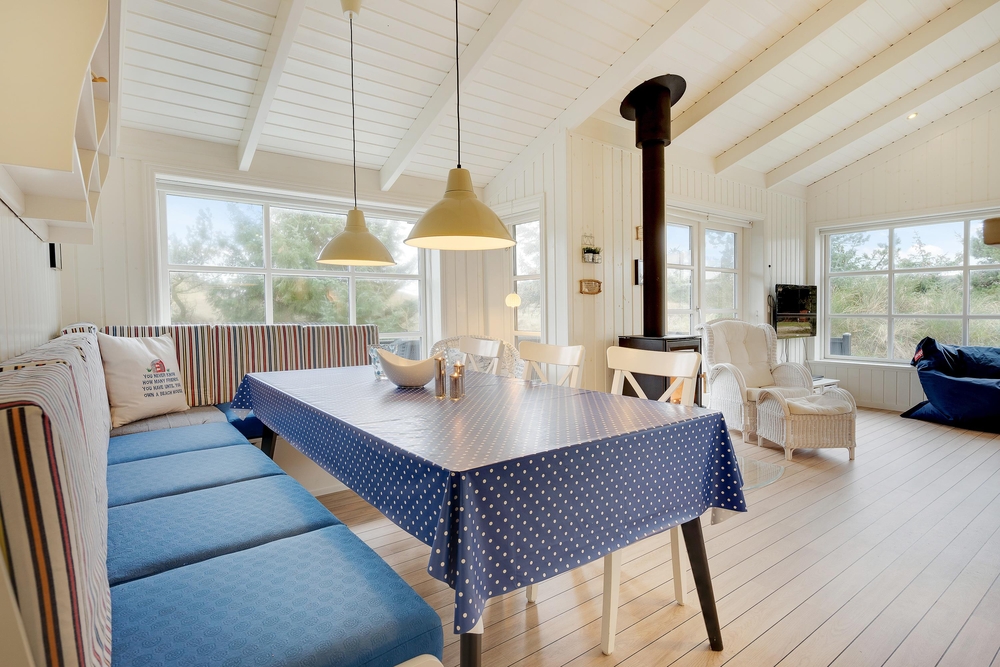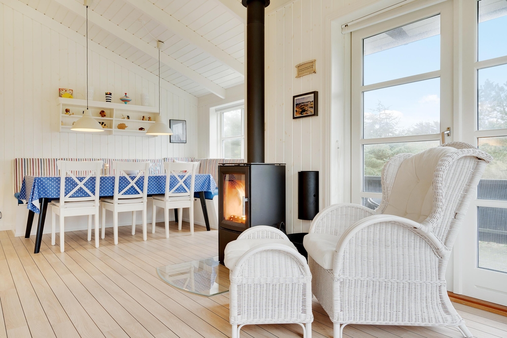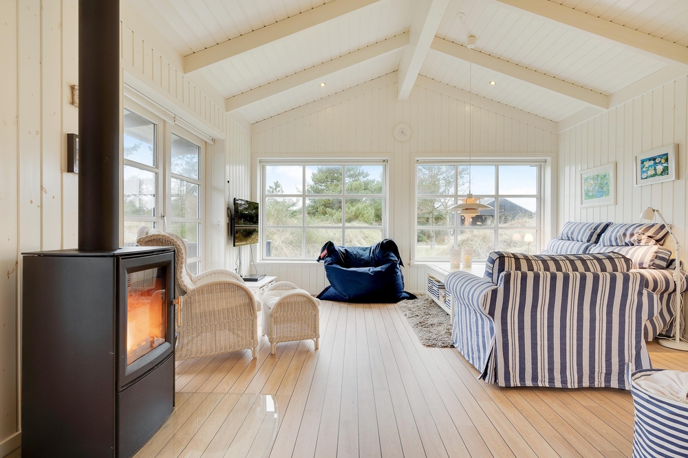 Hier werdet ihr euch sicherlich wohlfühlen. Die großen Fenster lassen viel Licht herein und lassen die schönen, hellen Zimmer, die mit bequemen Möbeln ausgestattet sind und viel nordische Urlaubsatmosphäre vermitteln, hell und freundlich erscheinen. Ein Holzofen sorgt vor allem an dunklen Winterabenden für eine besonders gemütliche Atmosphäre. Das Knacken des Feuers und das warme, orange Leuchten schmeichelt dem Raum und sorgt für Entspannung pur.