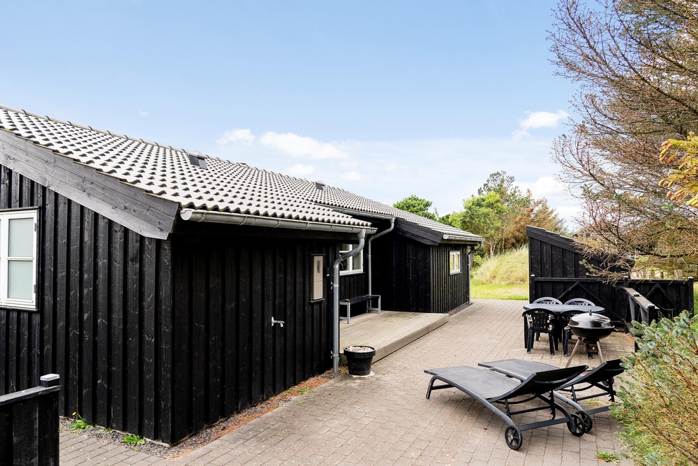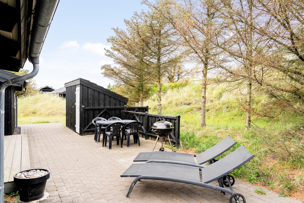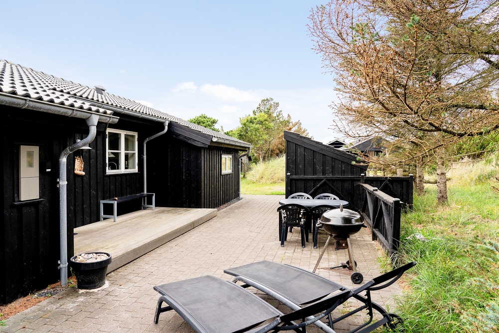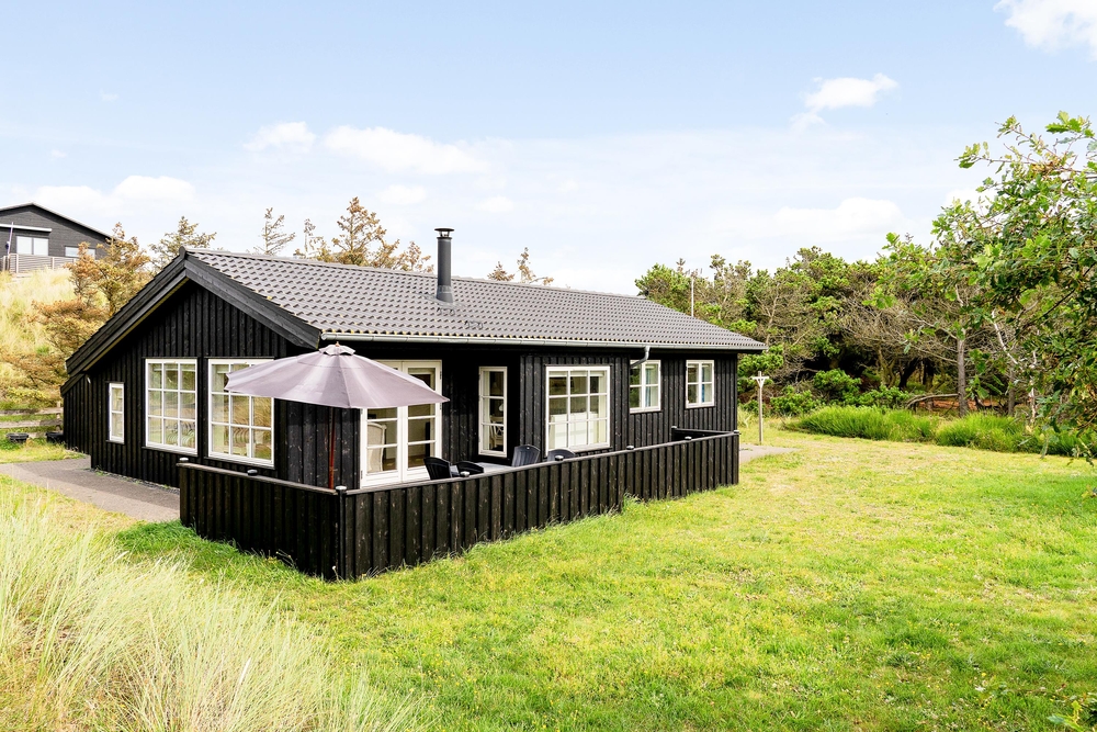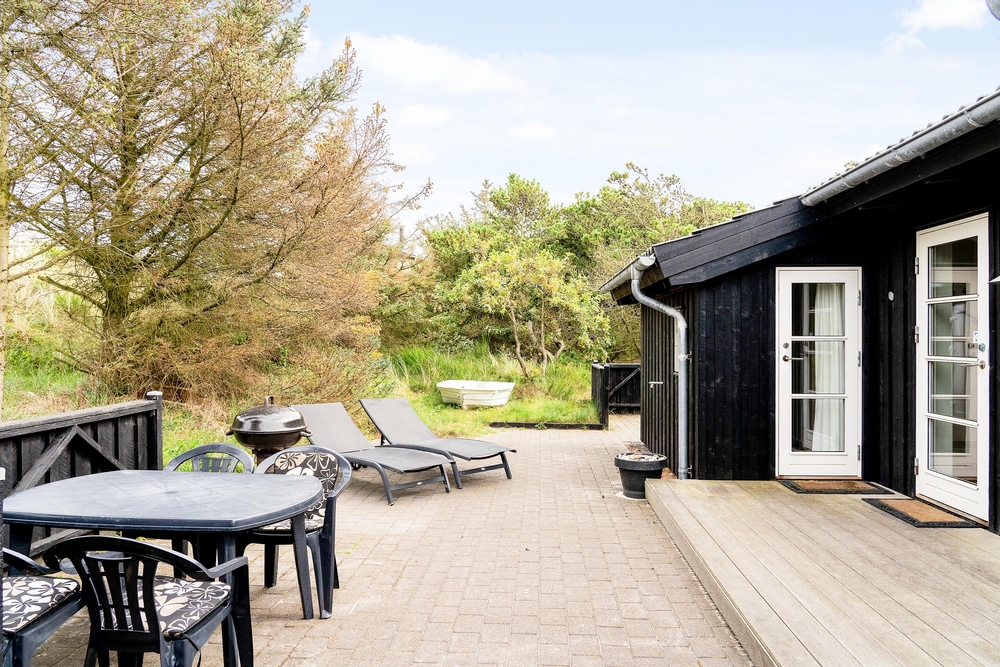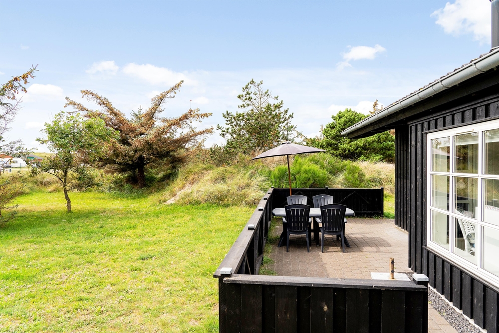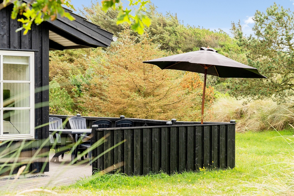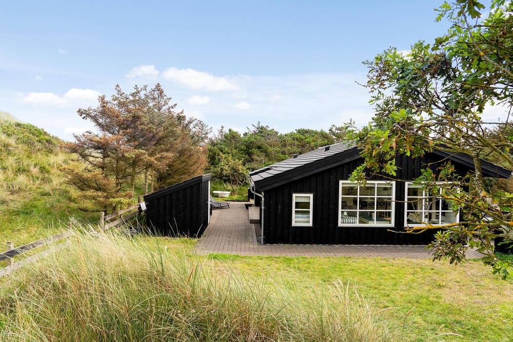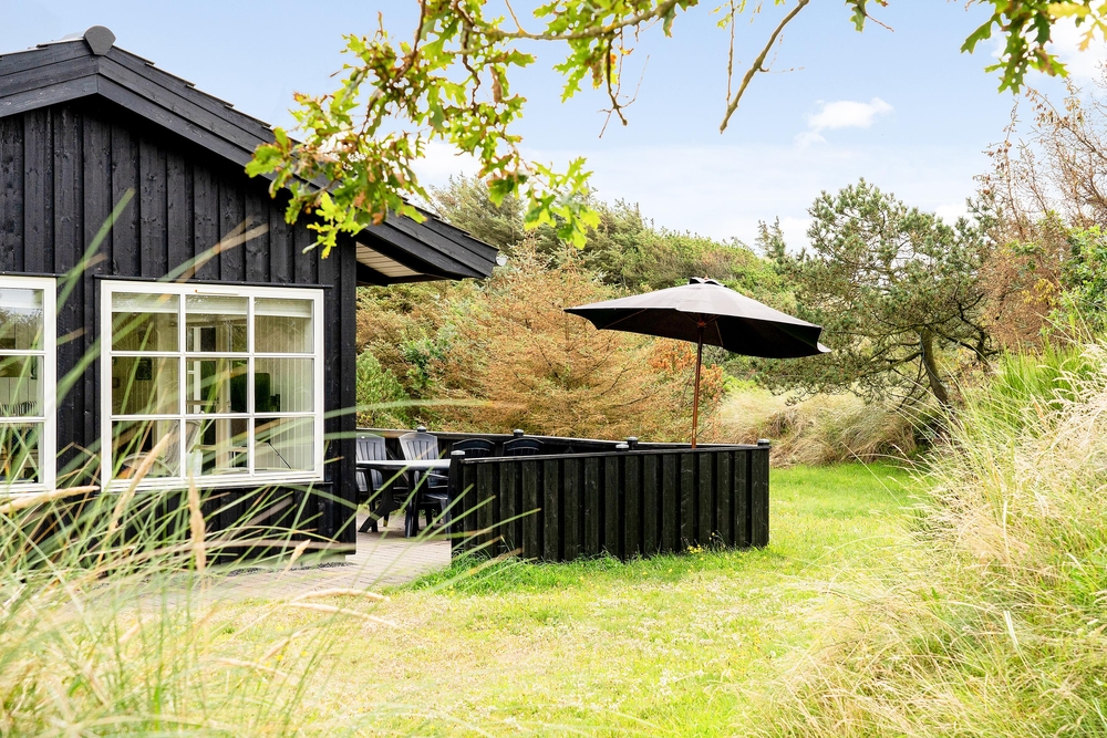 Das Ferienhaus liegt auf einem schönen hellen Naturgrundstück, das von Dünen, niedrigen Bäumen und Sträuchern umgeben ist und somit geschützt liegt. Vorallem auf der Südwestterrasse, die abgeschirmt ist, könnt ihr bereits im Frühling Draußen sitzen und die ersten Sonnenstrahlen genießen. Das entfernte Rauschen des Meeres, der Duft der Heide und das Zwitschern der Lärchen vermitteln das Gefühl von Natur pur. Denn Spurvevej 2 liegt nur 300 Meter vom Meer entfernt, so dass ihr euch einfach das Handtuch einfach über die Schulter werfen und vor dem Frühstück ein erfrischendes Bad in der manchmal stillen und manchmal tobenden Nordsee nehmen könnt. Und wie wäre es anschließend mit einer Runde in der Sauna?