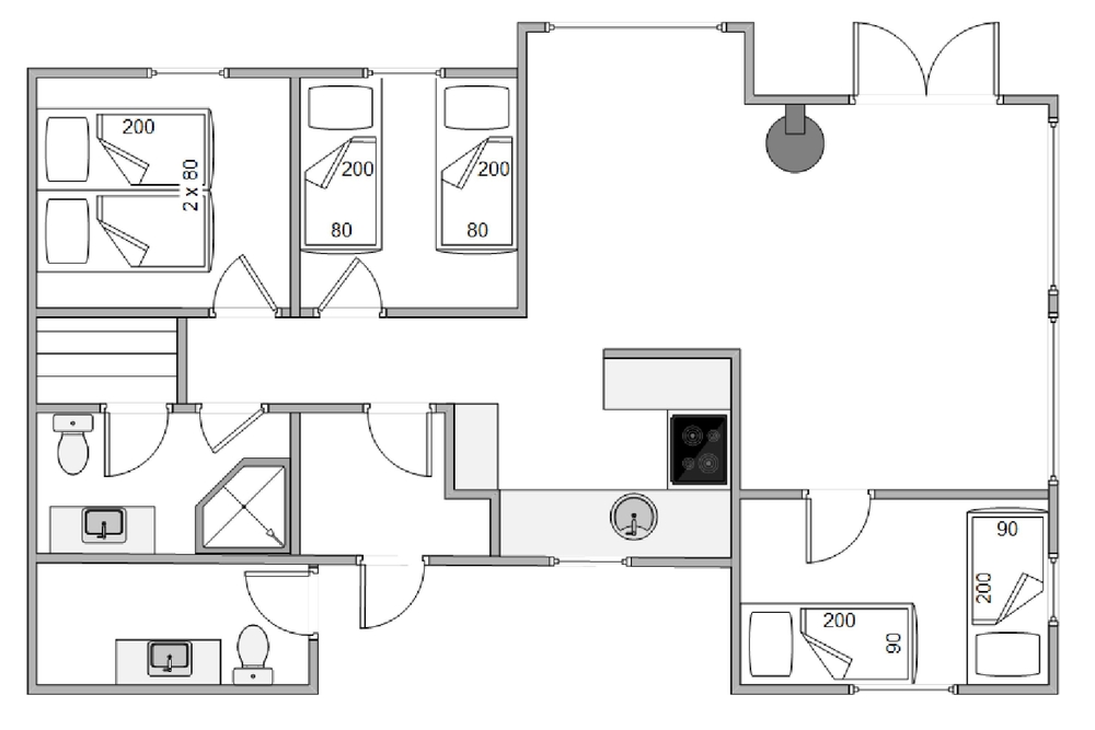 Dieses 87 m2 große Haus bietet alles, was ihr für einen schönen Urlaub benötigt. 3 gute Schlafzimmer, von denen eines mit einem Doppelbett und die anderen beiden mit Einzelbetten ausgestattet sind, ein schönes Badezimmer mit Sauna sowie ein Gäste-WC mit Waschmaschine und Trockner.