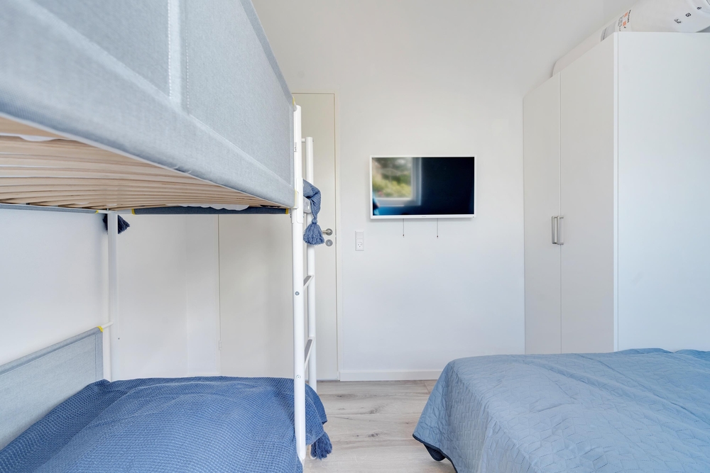 Insgesamt stehen für bis zu 12 Personen 5 Schlafzimmer mit entweder breiten Doppelbetten, Einzelbetten und auch Etagenbetten bereit. Gerade die Kinder werden sich sofort im Zimmer mit den Etagenbetten einnisten und ihr Reich verteidigen.