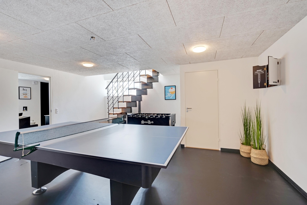 Mitten in einem strandnahen Ferienhausgebiet von Vejers erwartet euch im Spurvevej 4 dieses tolle und in 2020 neu erbaute Aktivitätshaus. Mehrere Familien oder auch Freunde können hier gemeinsam Urlaub machen und sich sowohl auf Wellness in Form von Sauna und einem Standwasserwhirlpool als auch auf Spiel, Spaß und Action freuen, da es auch Poolbillard, Tischtennis, Tischfußball und Dart gibt. Es ist also für Jeden etwas dabei und auch euer Hund ist hier herzlich willkommen.