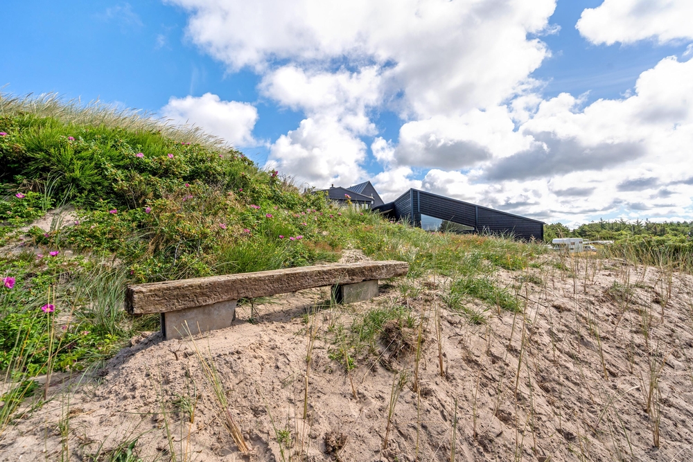 Man kann nicht direkt am Eingang des Hauses parken. Es gibt eine kleine Düne zwischen Parkplatz und Haus.