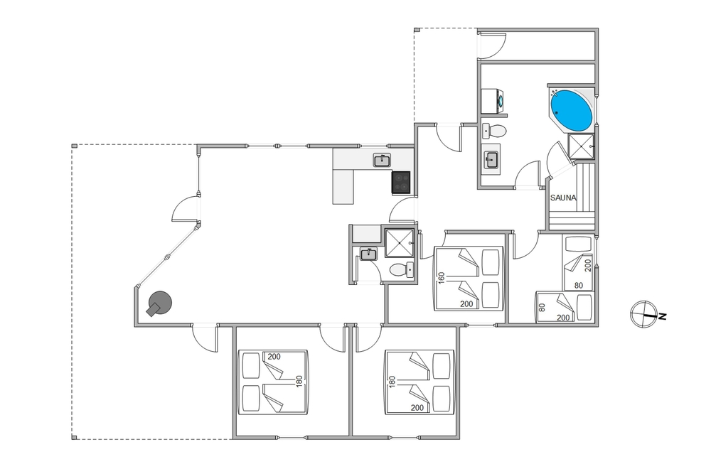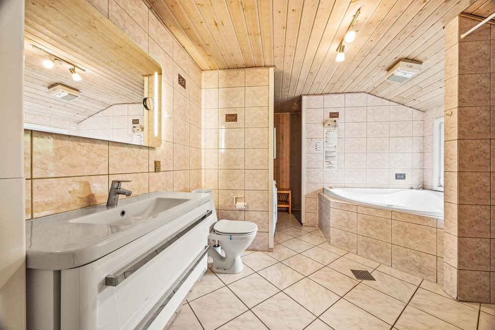 Es gibt vier schöne Schlafzimmer, wovon drei mit Doppelbetten, und eins mit 2 Einzelbetten ausgestattet sind. Außerdem könnt ihr euch in zwei Badezimmern einrichten. Ein kleineres mit einer Duschnische und das große Badezimmer, in dem auch Sauna und Whirlpool sind. Hier stehen euch auch noch Waschmaschine und Trockner zur Verfügung.