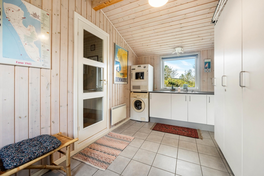 Um die tägliche Hausarbeit schnell zu bewältigen, enthält der Hauswirtschaftsraum eine Waschmaschine und einen Trockner. Das Ferienhaus verfügt auch über eine energiesparende Wärmepumpe, die für schnelle Aufheizung sorgt.