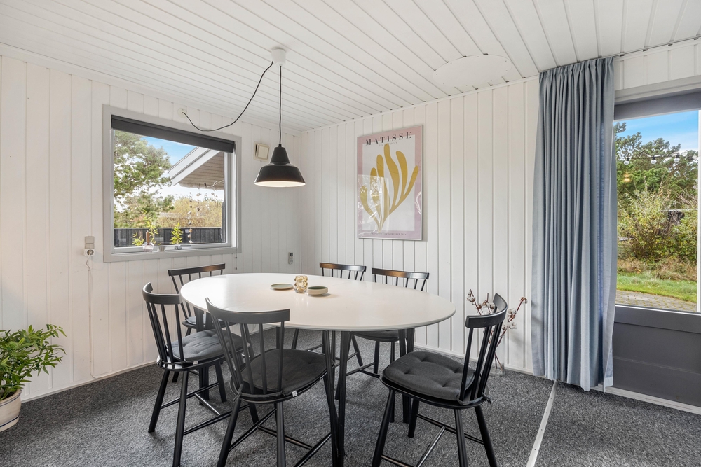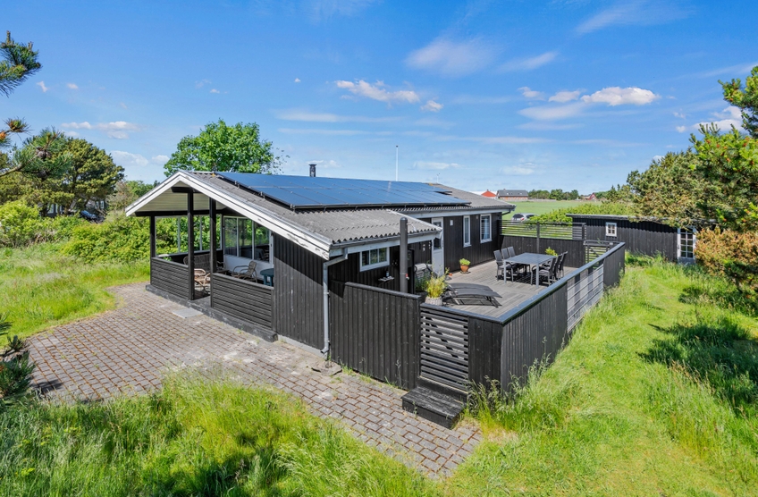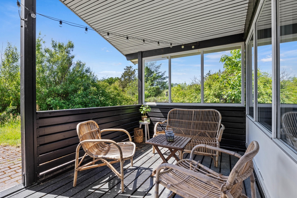 Auf Store Klit 65 habt ihr mehrere Möglichkeiten, um draußen einen guten Platz zu finden. Eine Terrasse ist überdacht und abgeschirmt und mit einem Loungeset ausgestattet. Hier könnt ihr euch mit einem guten Buch, oder einem Kaffee zurücklehnen und die Kinder im Garten beobachten. Für die Kleinen sorgen ein Trampolin und eine Schaukel für viel Spaß.