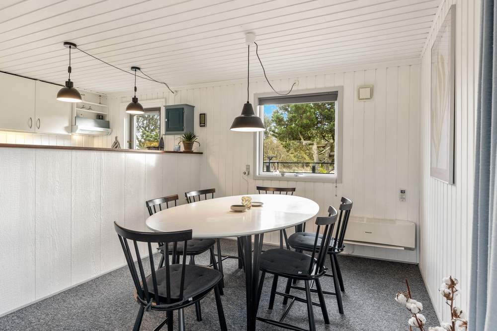 Das Ferienhaus ist hell und geräumig eingerichtet mit komfortablen Möbeln und genügend Platz zum Beisammensein. Der große Wohnraum ist mit Wohnzimmer und Essecke kombiniert und in offener Verbindung zur gut eingerichteten Küche mit Geschirrspüler. Hier könnt ihr es euch gemütlich machen vor dem Kamin, oder am Esstisch zusammen Spiele spielen.
