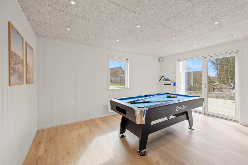 Dieses Ferienhaus am Strandfogedvej 46 in Henne bietet Platz für 8 Personen und Aktivitäten für Alle: Entweder könnt Ihr Billard oder Tischtennis spielen, oder auch könnt Ihr euch entspannen in der Sauna und Außenspa.