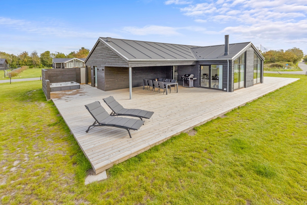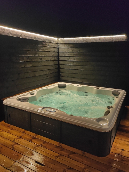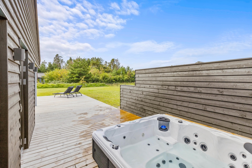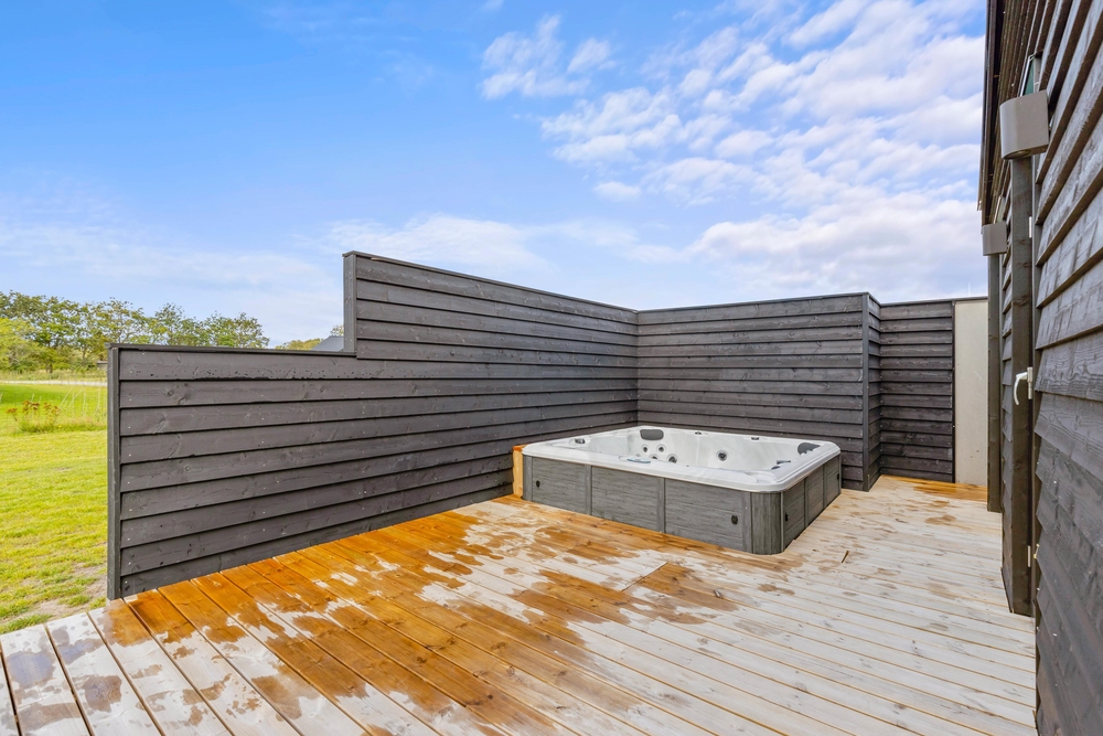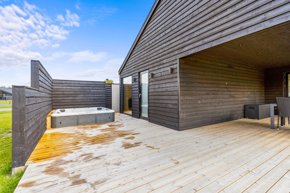 Der Außenbereich des Ferienhauses bietet viel Entspannung. Hier erwartet Euch ein Außenspa für 5 Personen, die Euch während des Urlaubs mit zusätzlicher Entspannung verwöhnen kann. Sobald Ihr den Außenspa benutzt habt, könnt Ihr euch unter der Außendusche*, die sich direkt nebenan auf der abgeschirmten Terrasse befindet, abspülen.
