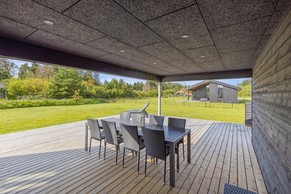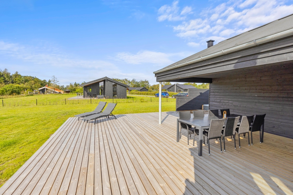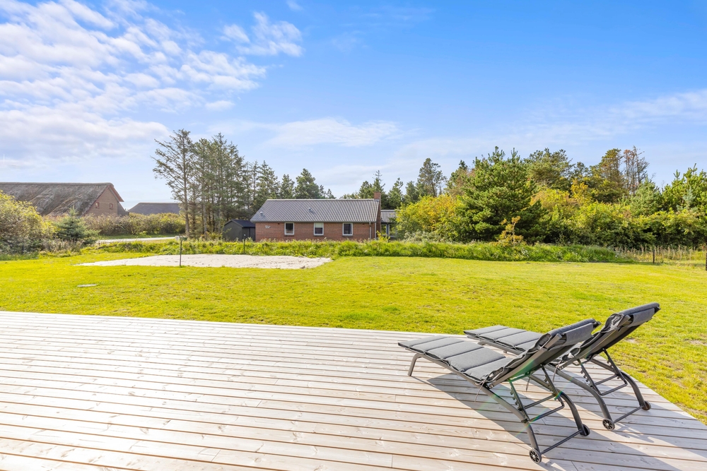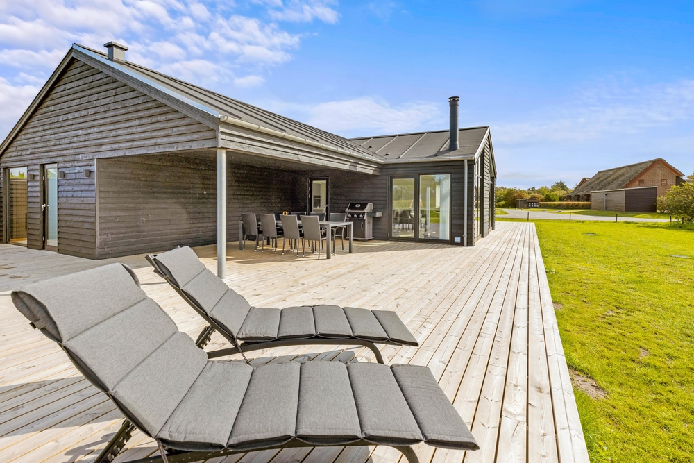 Auf der weiteren Terrasse des Ferienhauses gibt es gute Möglichkeiten, sich ein ruhiges Plätzchen zu suchen: Bequeme Terrassenmöbel und Sonnenliegen stehen zur Verfügung sowohl zum Sonnenbaden als auch zum Genießen Ihres Abendessens, das auf dem Gasgrill des Ferienhauses zubereitet worden ist.