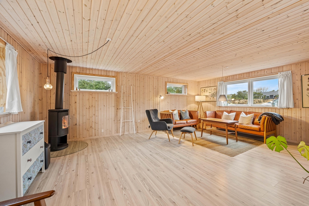 Das Ferienhaus wurde 2020 einer Teilrenovierung unterzogen und besteht aus einem schönen, hellen Wohnzimmer mit viel Platz für Gemütlichkeit. Während der Holzofen im Hintergrund sanft knistert, laden die gemütlichen Möbel dazu ein, mal wieder gemeinsam einen Film anzuschauen. In der gut eingerichteten Küche ist alles vorhanden was benötigt wird, um ein perfektes Abendessen vorzubereiten. Als kleines i-Tüpfelchen, verfügt die Küche noch über einen Geschirrspüler.