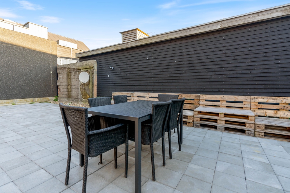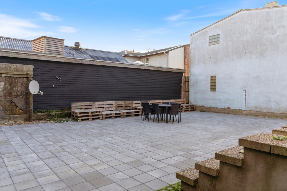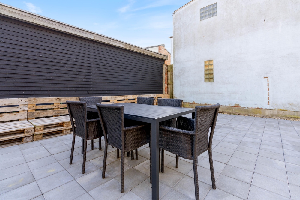 Zu der Wohnung gehört eine offene Terrasse im Hinterhof, die zu gemütlichen Stunden im Freien einlädt. Es stehen Gartenmöbel und ein Grill für euch bereit, so dass ihr bei gutem Wetter leckere Mahlzeiten vom Grill zubereiten könnt.