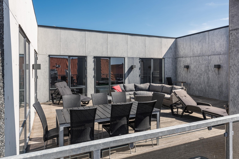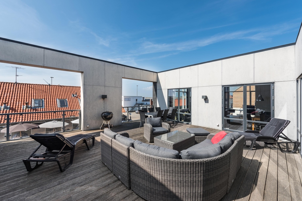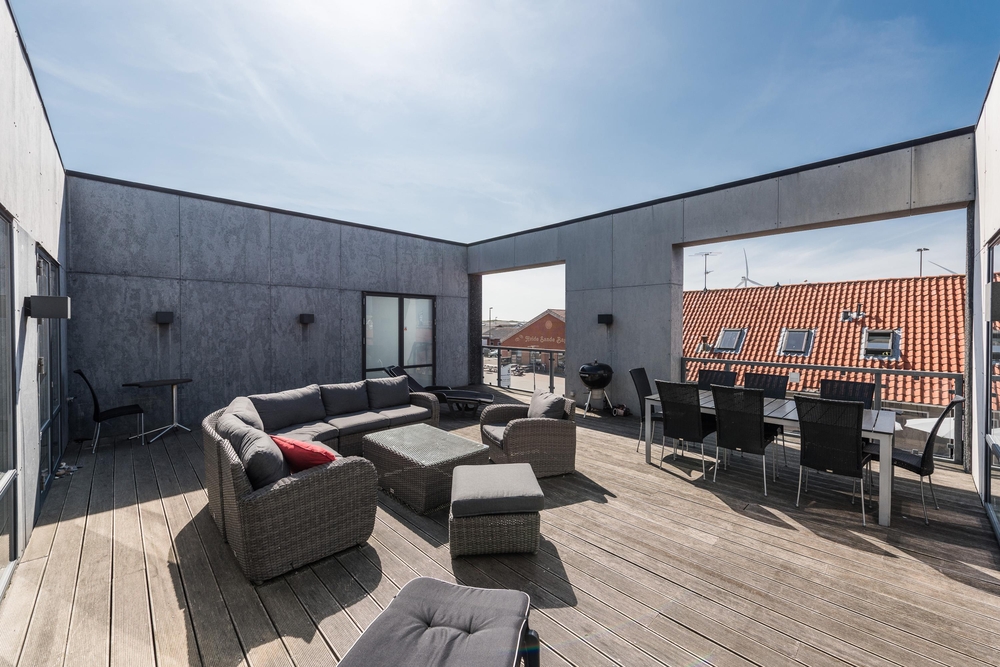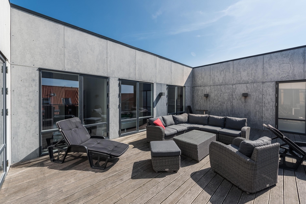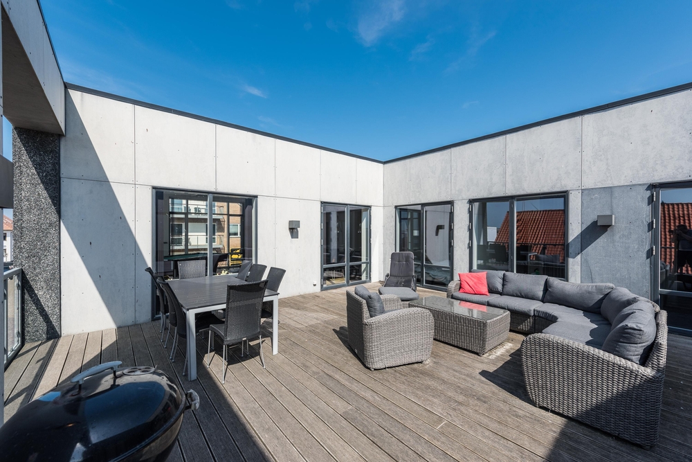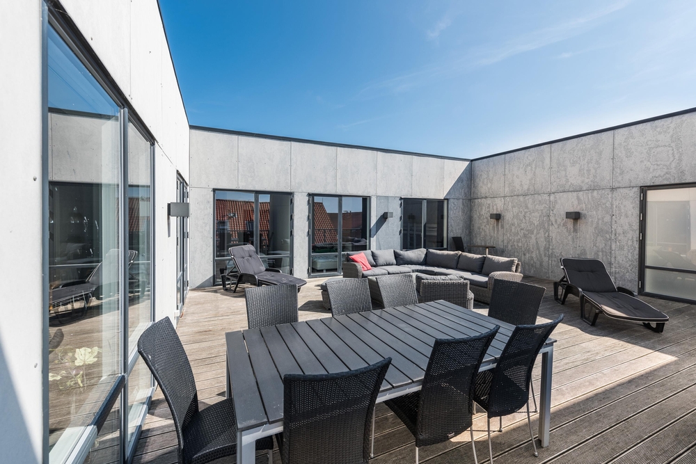 Ein weiteres Highlight der Wohnung ist die große Dachterrasse, hier könnt ihr die Sonne, die Aussicht und die frische Luft genießen. Auch die Kinder haben hier genügend Platz um zu spielen.
