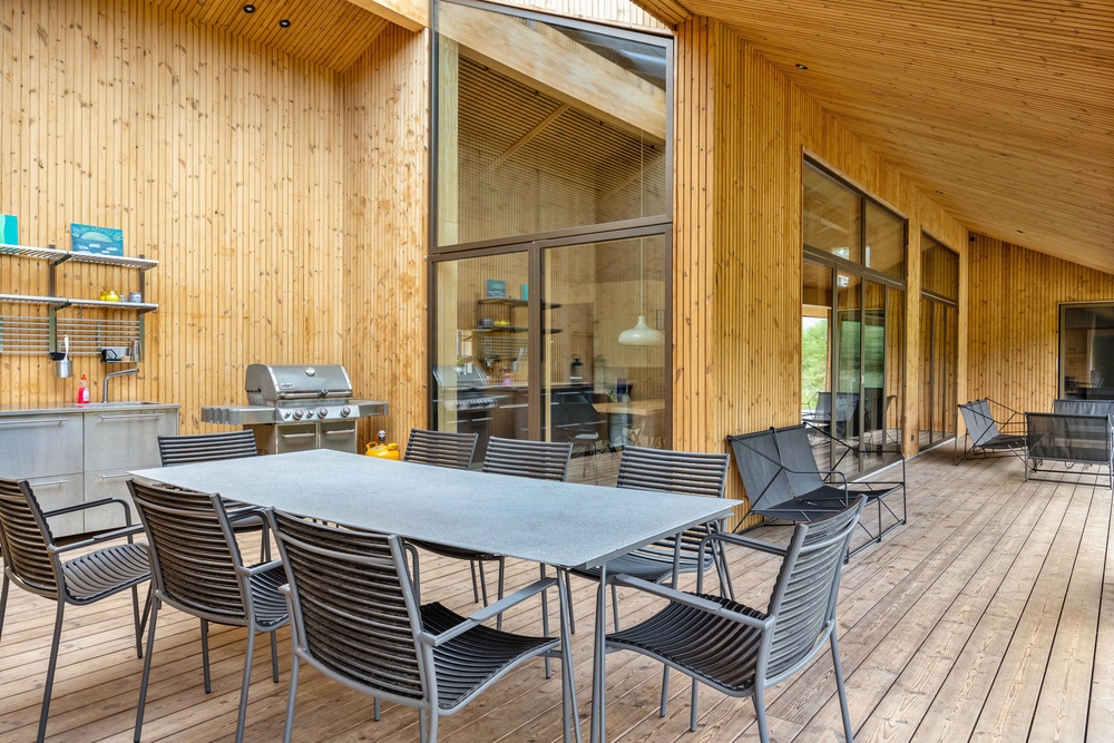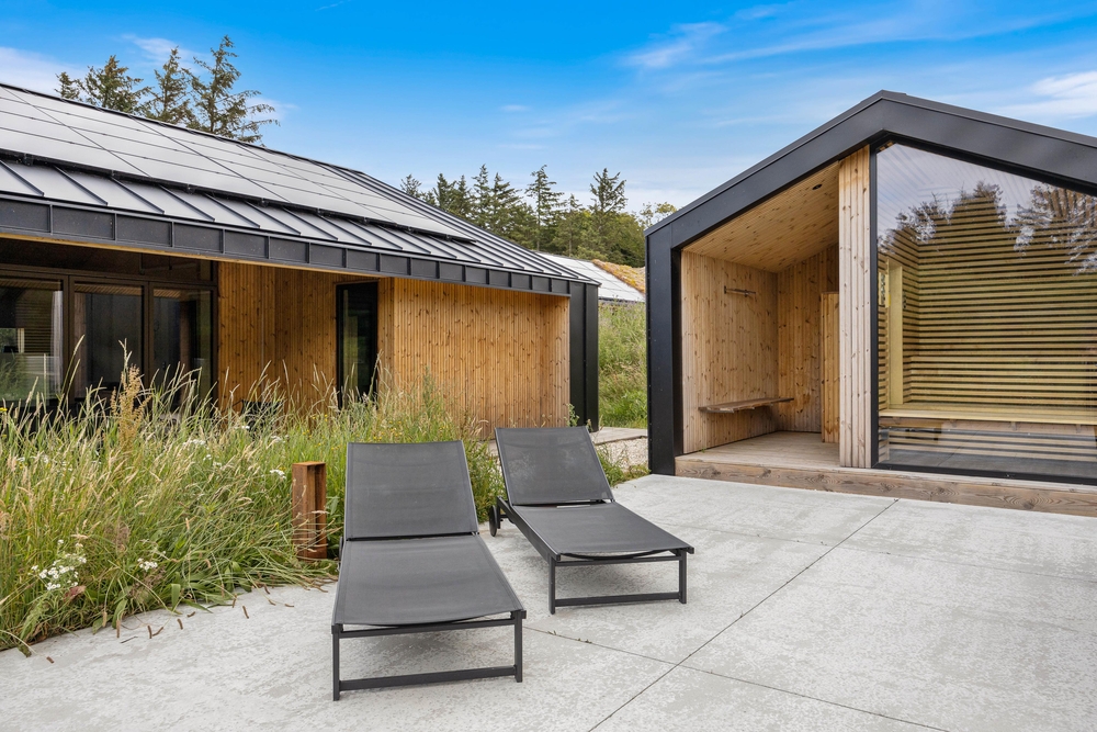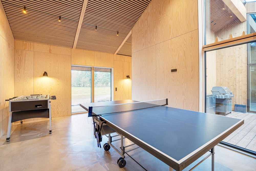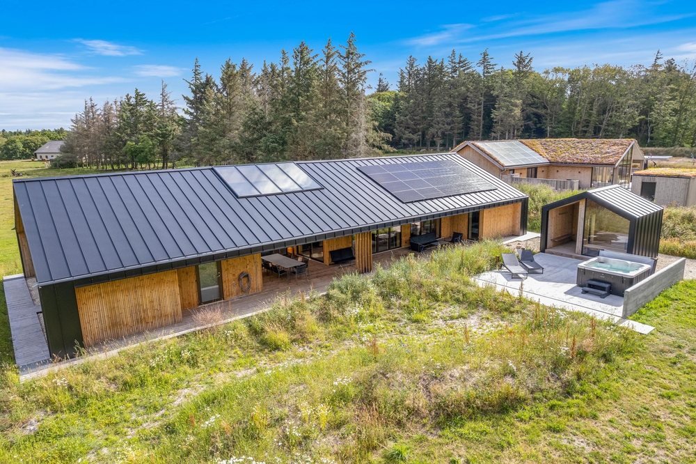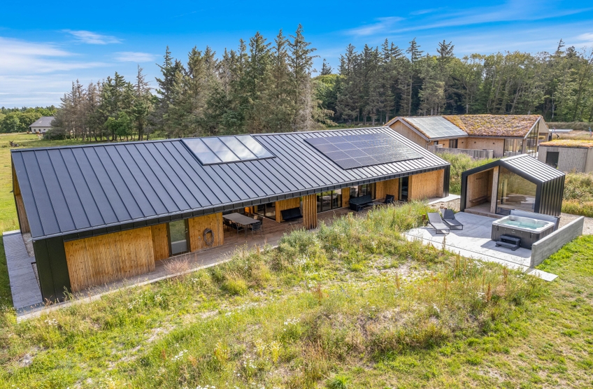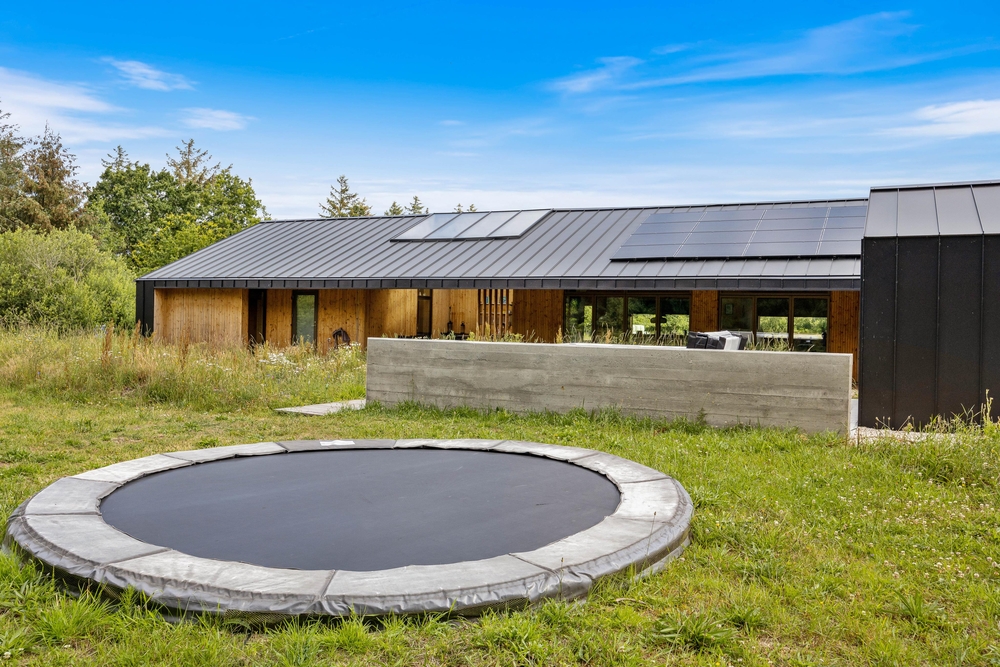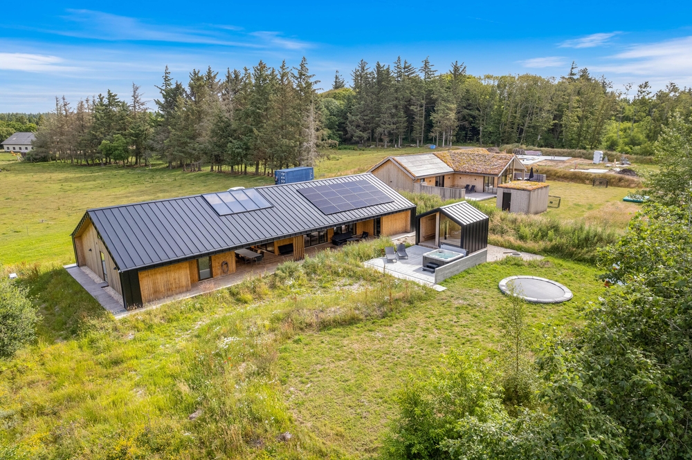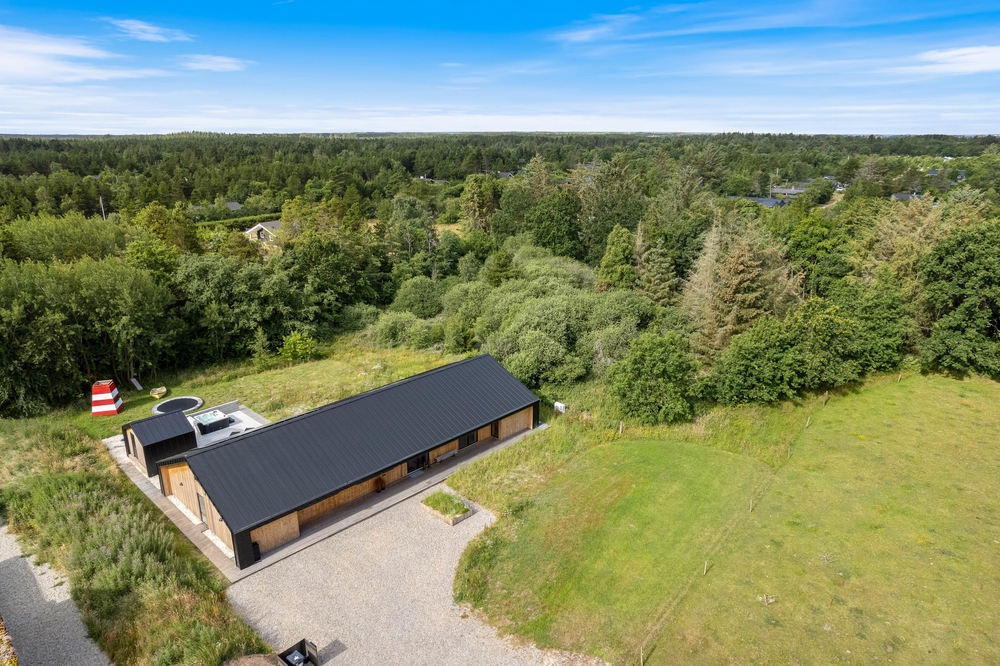 In Henneby, einem ruhigen und ländlichen Ortsteil im Grünen, nur knapp 2000 m entfernt von Henne Strand erwartet euch auf dem Strandgodsvej 17 das in 2022 neu gebaute Ferienhaus mit toller und luxuriöser Ausstattung. Freut euch auf einen Urlaub mit der ganzen Familie oder mit euren Freunden! Bis zu 8 Personen und 1 Hund finden auf 190 m² Platz und eine schöne Wohlfühloase für die schönste Zeit des Jahres. Highlight sind nicht nur die Lage im Grünen, sondern auch die tolle Ausstattung mit Fußbodenheizung im gesamten Haus, Außenwhirlpool, Außensauna, Außendusche sowie Trampolin für eure Kinder! Darüber hinaus gibt es einen Aktivitätsraum mit Tischtennis und Tischfußball.
