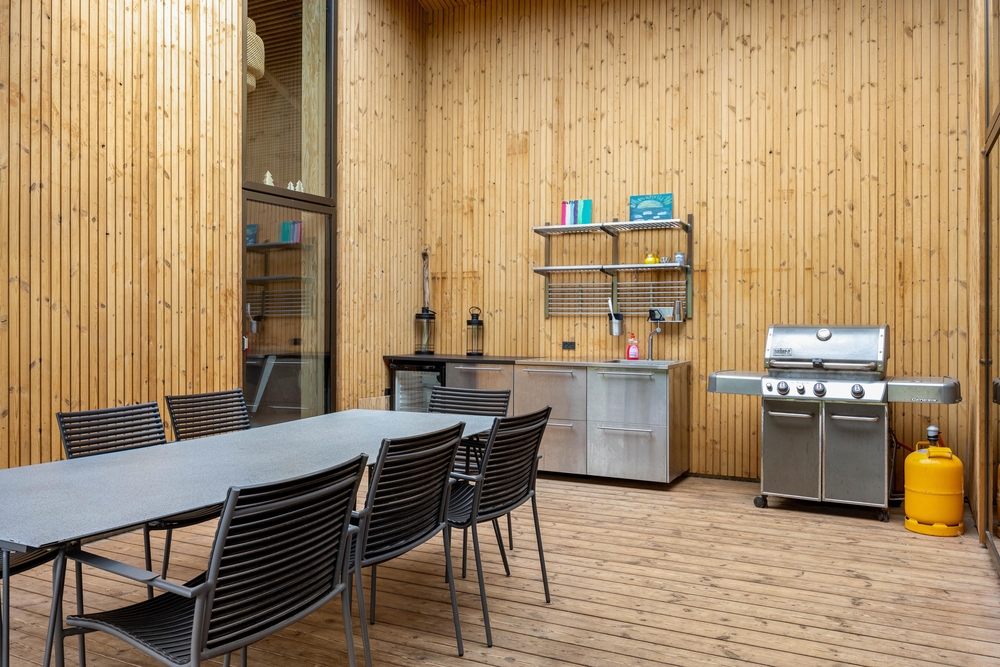 Die tollen Ausstattungsmerkmale wie Außenwhirlpool, Außensauna (sowohl Infrarotsauna als auch Saunaofen), Außendusche* und auch die teilweise überdachte Terrasse laden zu vielen Stunden an der frischen Luft ein. Für die Kinder gibt es richtig viel Platz zum Herumtoben und Spielen. Für die Kleinsten ist das Trampolin mit Sicherheit ein Hit, ebenso wie der viele Platz, um Fußball zu spielen. An kühleren Tagen bietet es sich an, den Aktivitätsraum auszutesten. Hier habt ihr die Möglichkeit, euch bei einem Tischtennisturnier oder auch Tischfußball auszupowern.