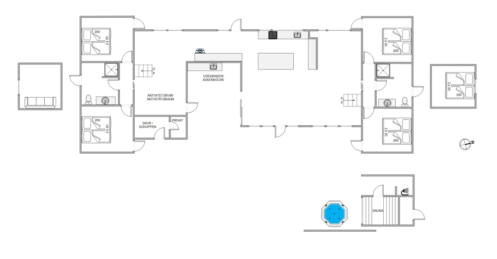 Das Ferienhaus auf Strandgodsvej 17 bietet nicht nur Platz für bis zu 8 Personen, sondern gleichzeitig die Vorteile eines privaten Wellnessurlaubes. Euch stehen ein Außenwhirlpool, eine Außensauna mit Infrarot sowie eine Außendusche zur Verfügung ? perfekt, um einen oder mehrere Wellnesstage zu verbringen.