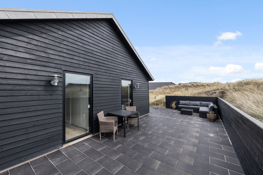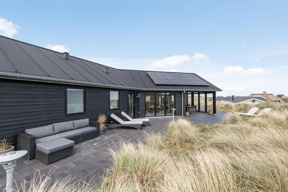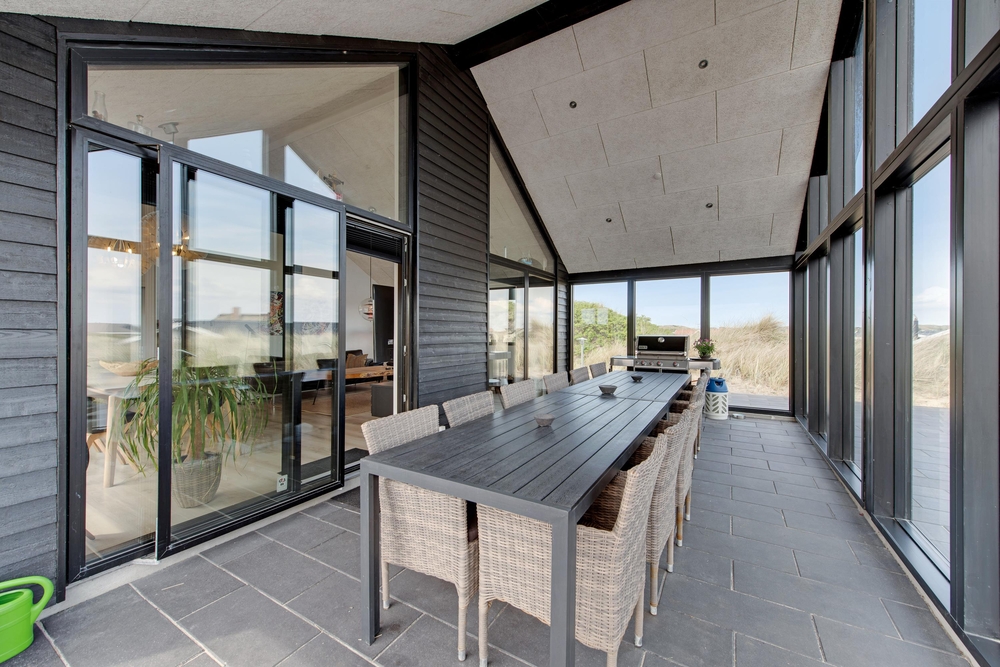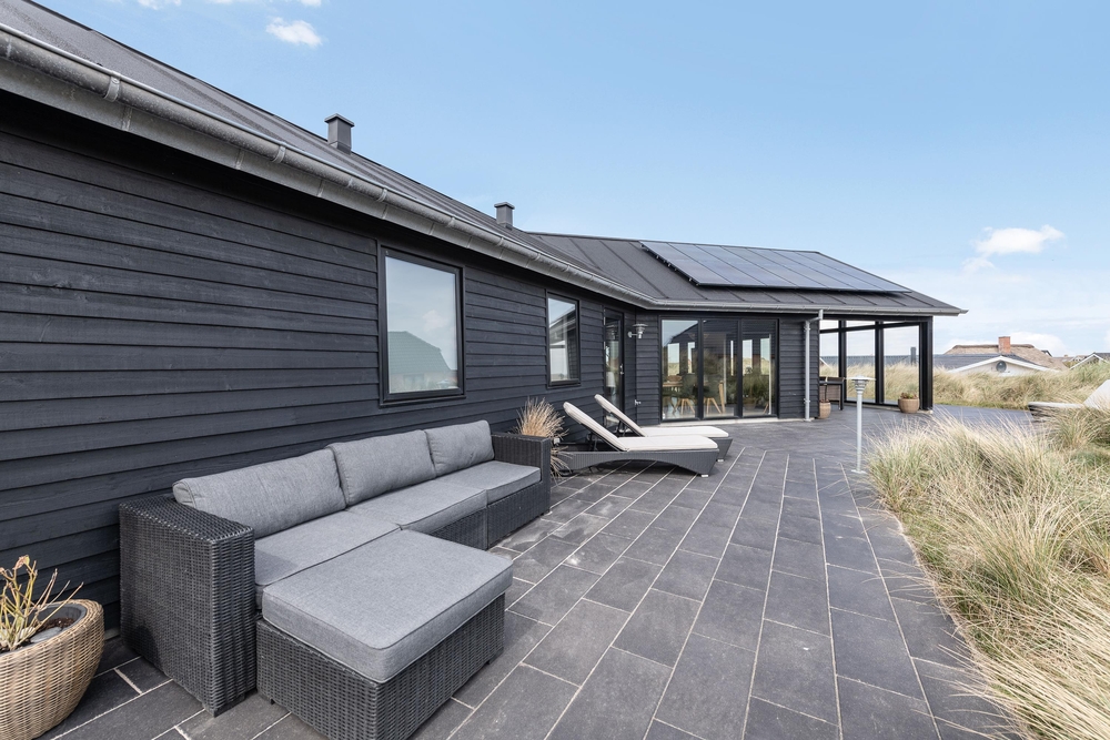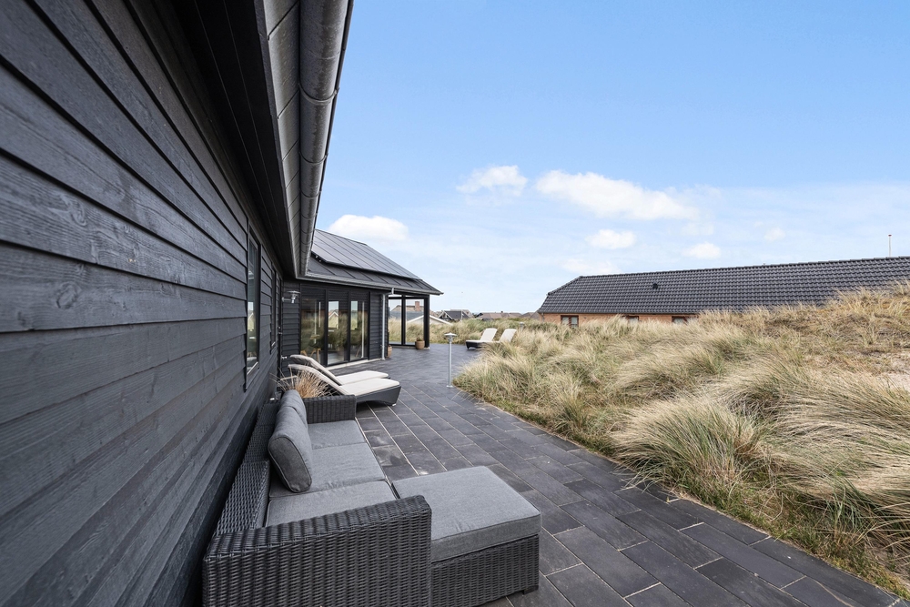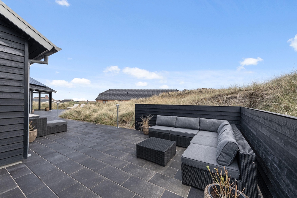 Die Terrasse ist riesig und erstreckt sich um das ganze Haus und als Bonus habt ihr noch eine fantastische Aussicht auf den Fjord. Hier könnt ihr bei jedem Wetter wunderschöne Stunden in naturschöner Umgebung verbringen. Durch den kurzem Abstand von nur 150m zum weiten Sandstrand könnt ihr das Meer rauschen hören und die Meeresbrise von der Sonnenliege aus einatmen.