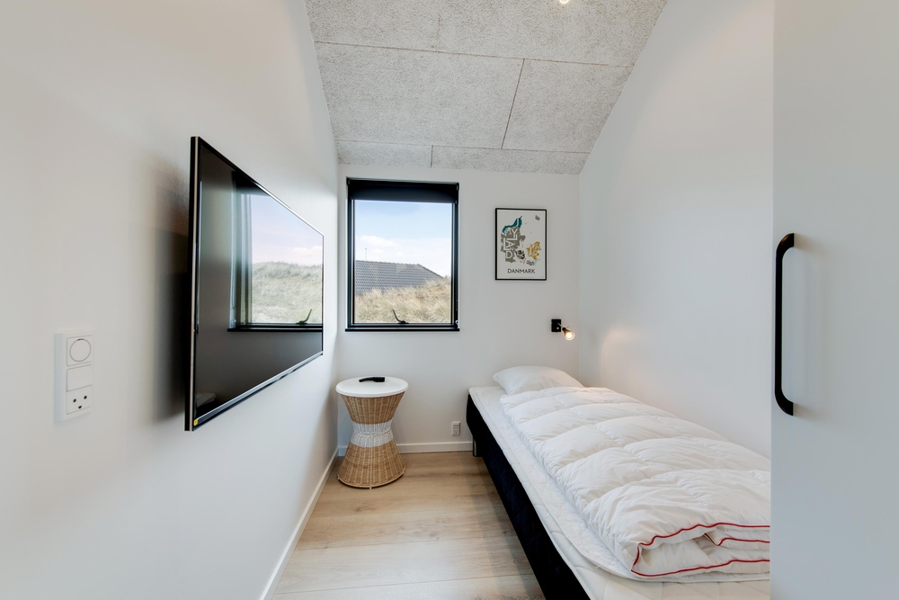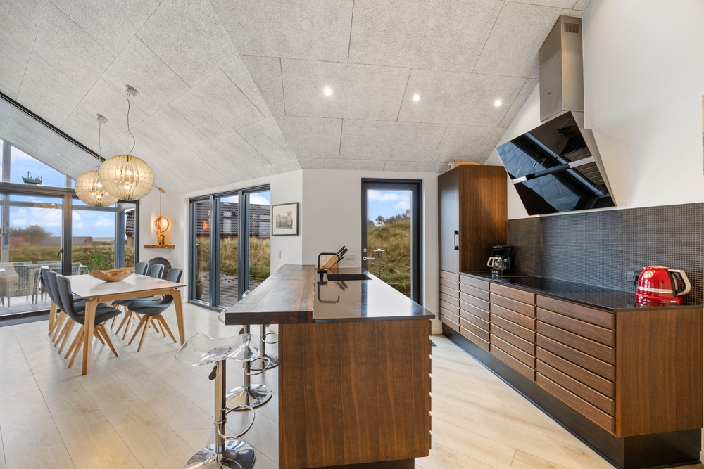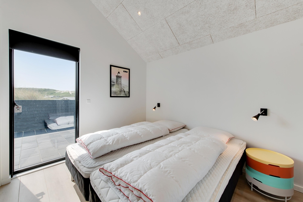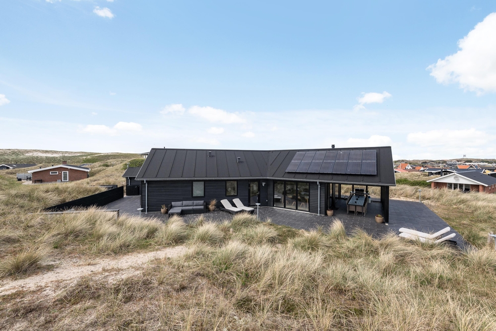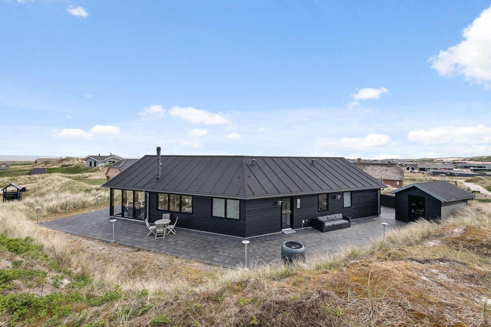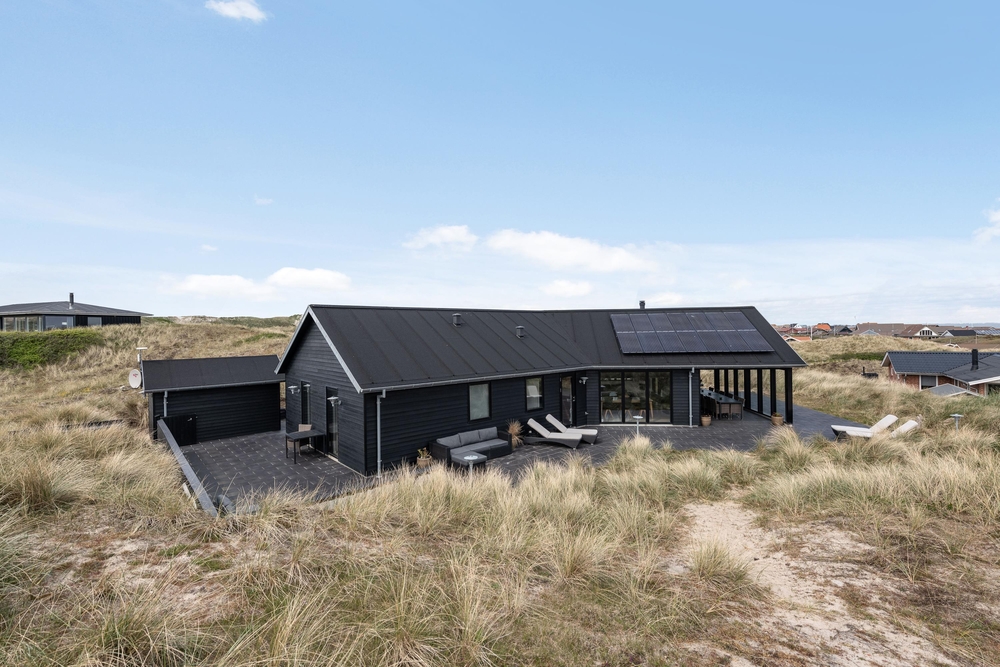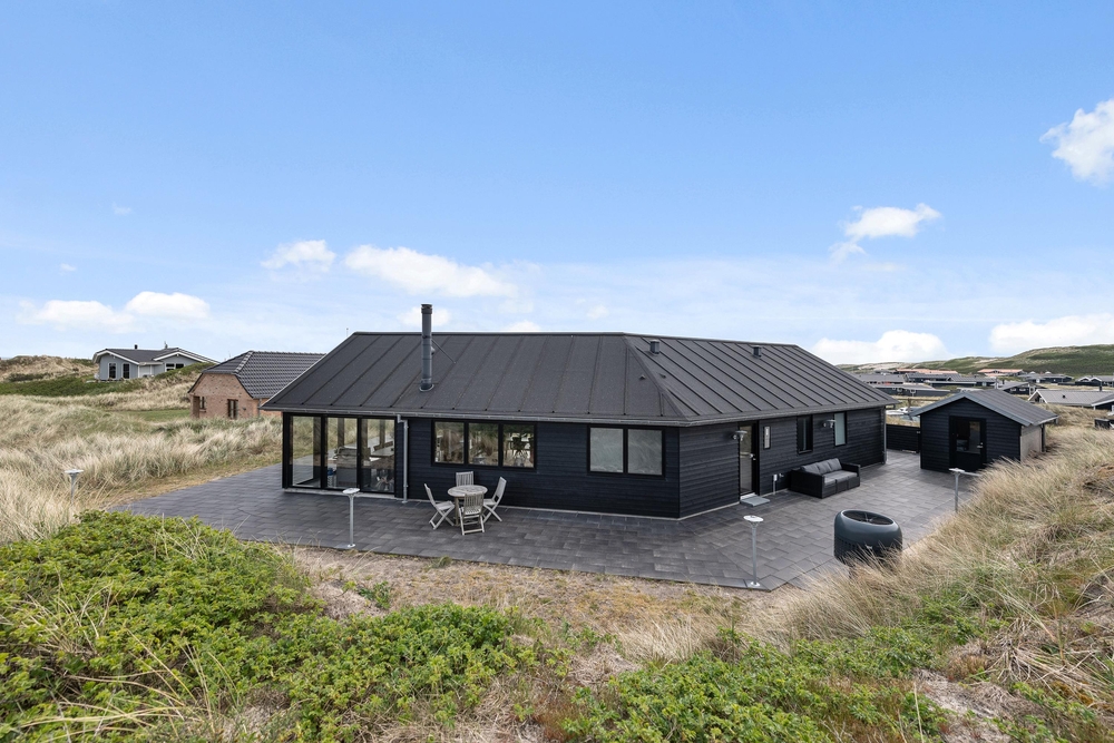 Die Terrasse ist riesig und erstreckt sich um das ganze Haus und als Bonus habt ihr noch eine fantastische Aussicht auf den Fjord. Hier könnt ihr bei jedem Wetter wunderschöne Stunden in naturschöner Umgebung verbringen. Durch den kurzem Abstand von nur 150m zum weiten Sandstrand könnt ihr das Meer rauschen hören und die Meeresbrise von der Sonnenliege aus einatmen.
