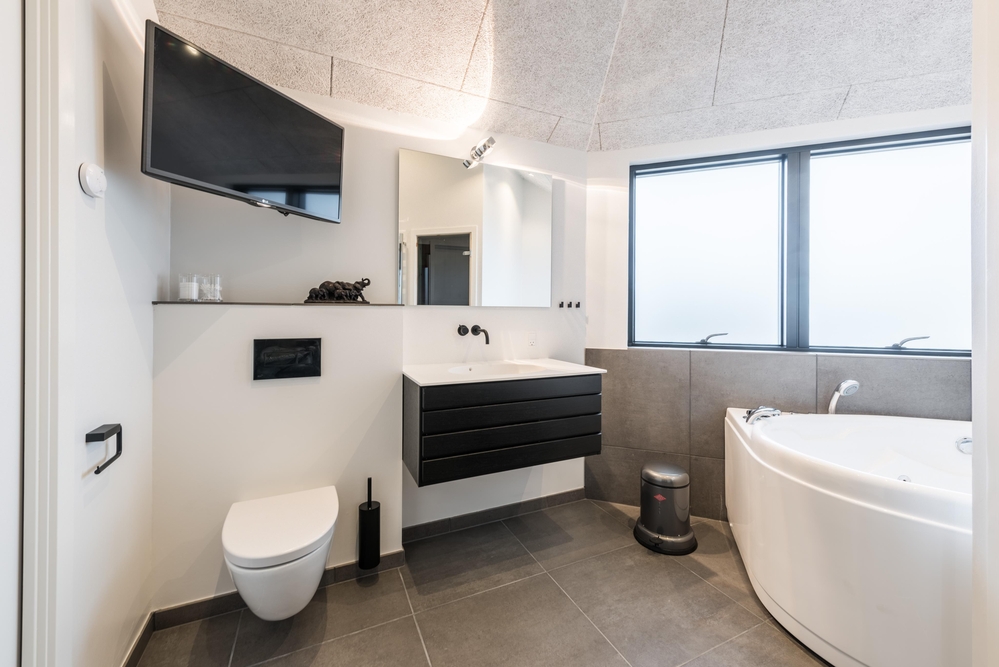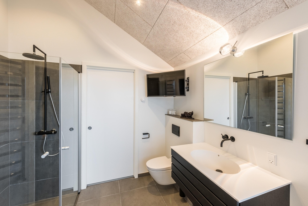 Neben den 4 Schlafräumen findet ihr auch 3 elegante Badezimmer im Haus, wobei 2 davon direkt von je einem Schlafzimmer aus zu erreichen sind. Das größte Badezimmer lädt zu Wellness und Entspannung ein. Zieht euch einfach ein paar Stunden zurück und genießt ein sprudelndes Bad im Whirlpool oder einen belebenden Saunagang.